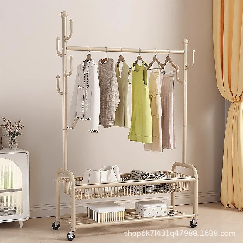 晾衣架落地家用可移动卧室凉衣架阳台挂衣服架子室内简易杆衣帽架