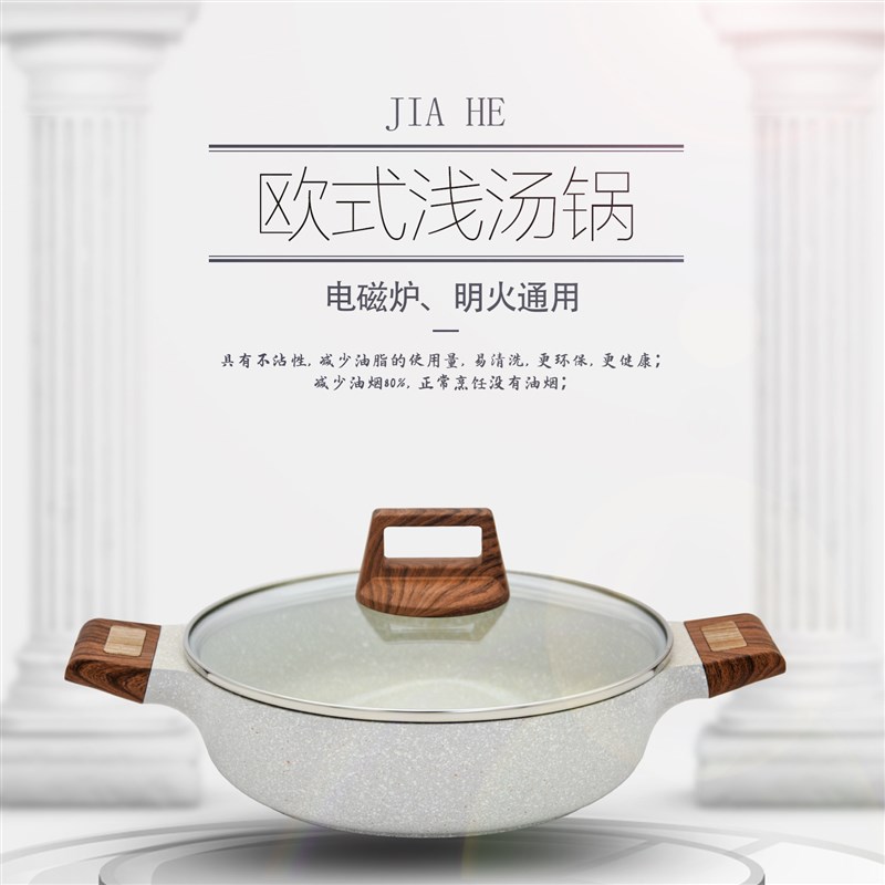 麦饭石欧式双耳清汤火锅锅家用多功能火锅盆不沾电U磁炉专用鸳鸯