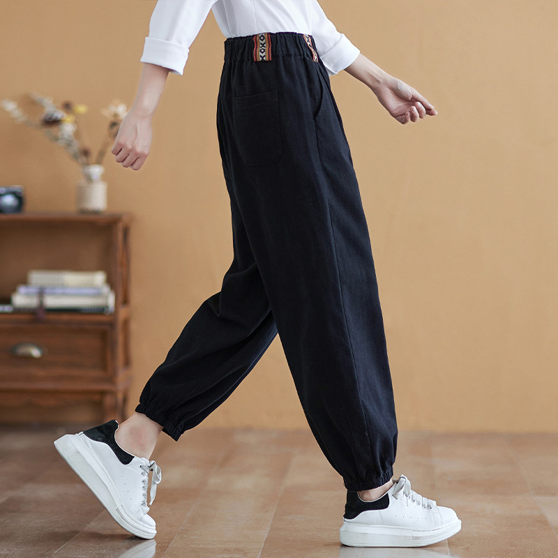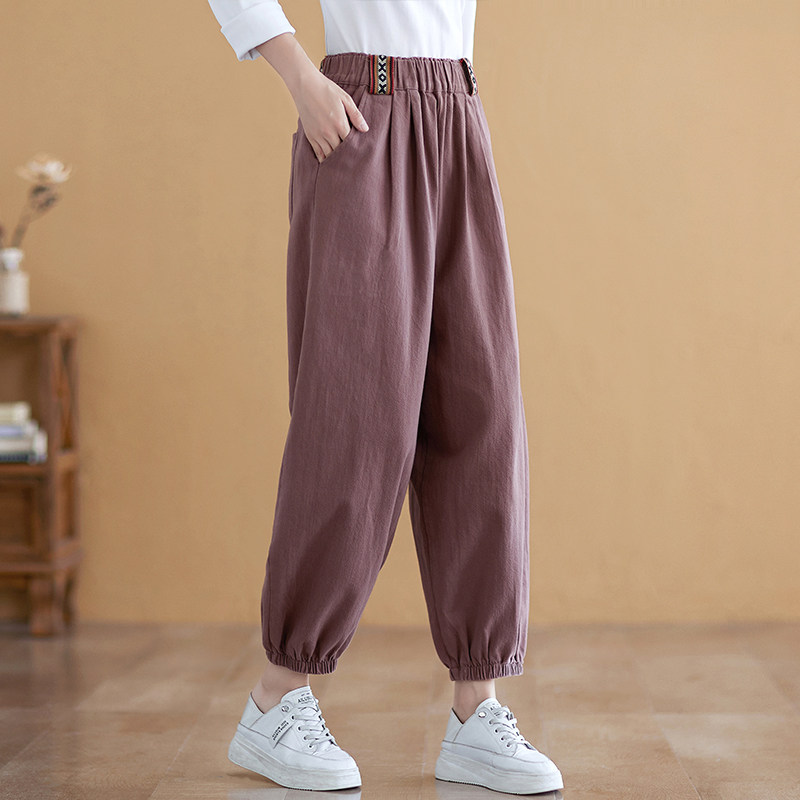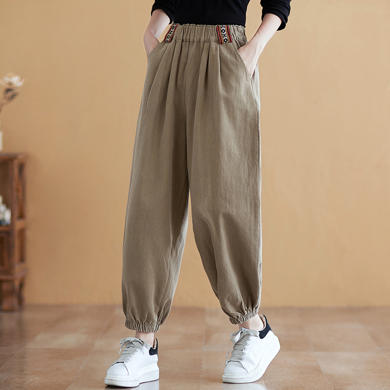 复古全棉休闲裤女显瘦束脚哈伦裤