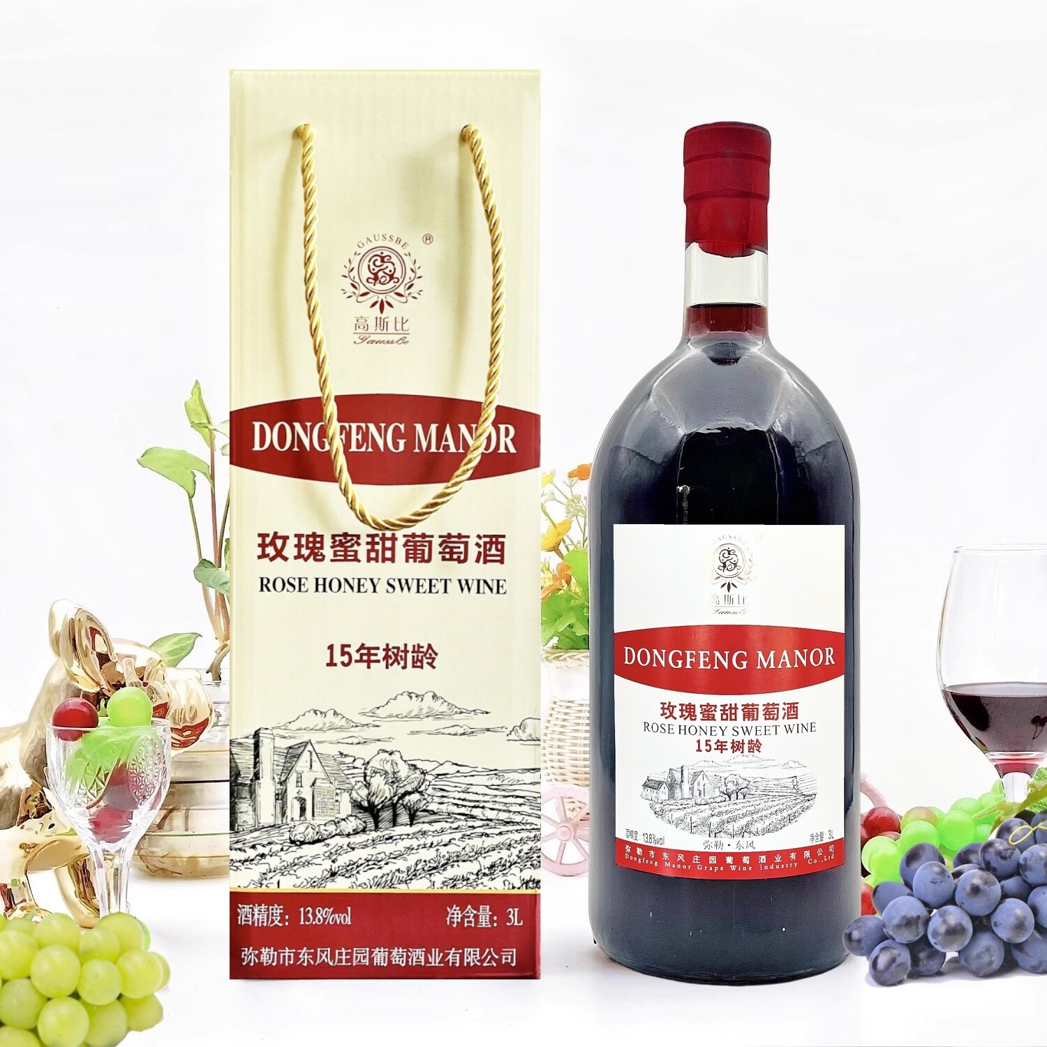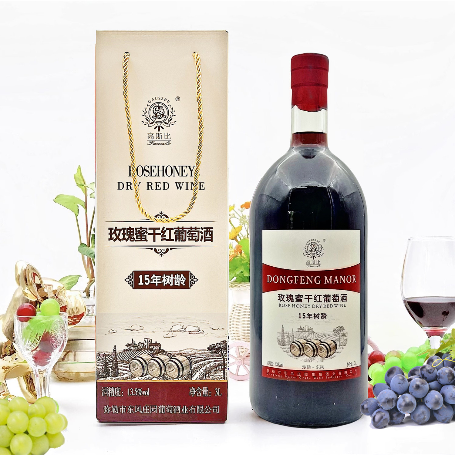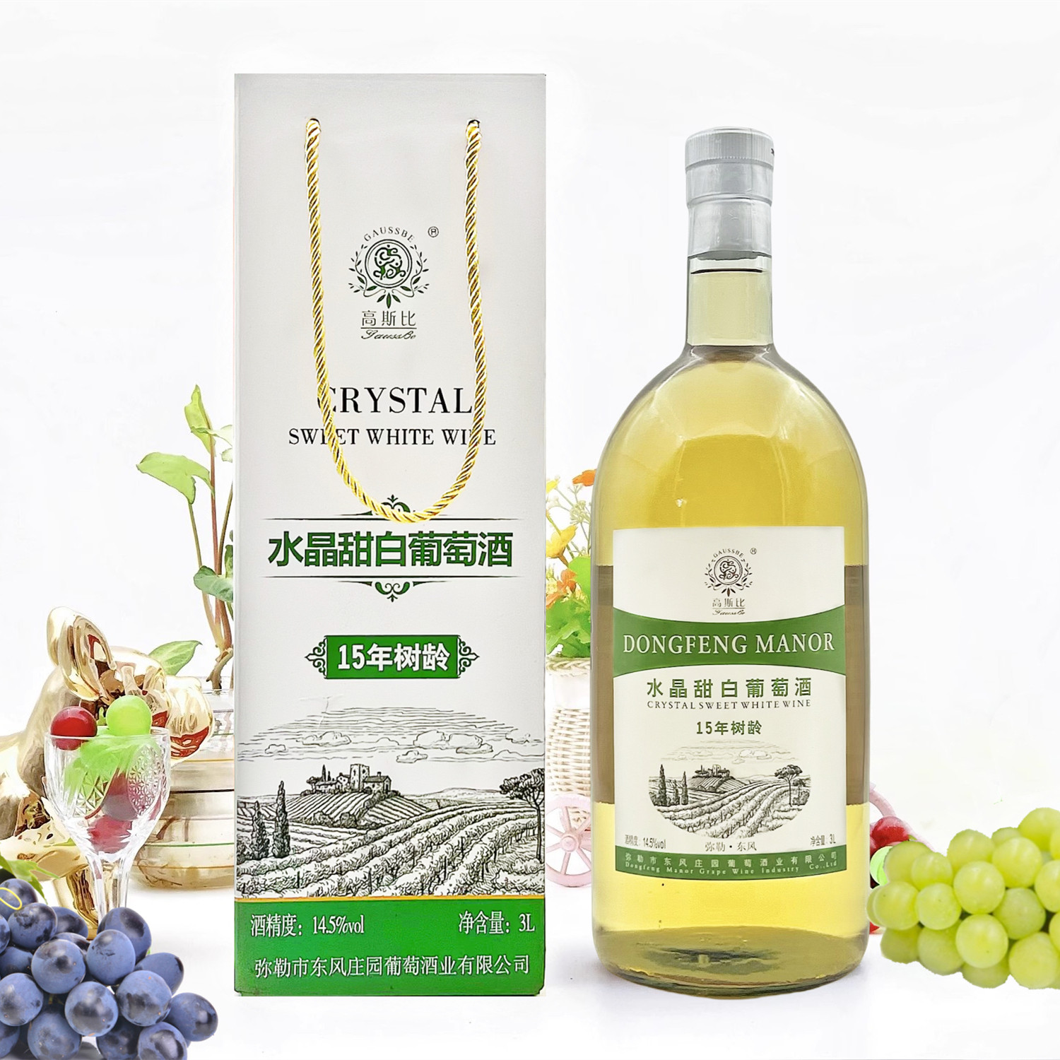 云南弥勒东风庄园高斯比15年树龄水晶甜白葡萄酒大瓶红酒3升6斤装