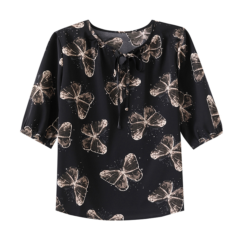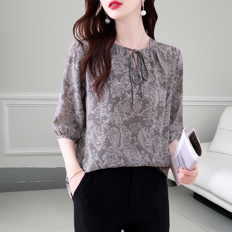 中袖雪纺衬衫女2025新款夏季宽松遮肚子显瘦洋气妈妈上衣薄款小衫