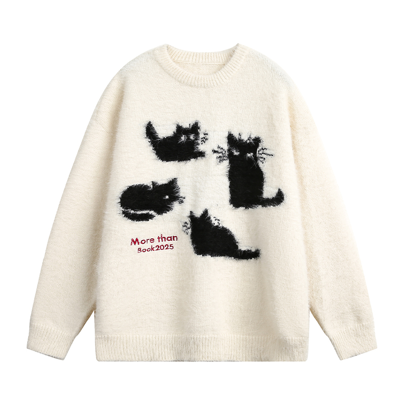 悟空有货潮牌猫咪马海毛圆领针织衫男女秋冬宽松情侣慵懒套头毛衣