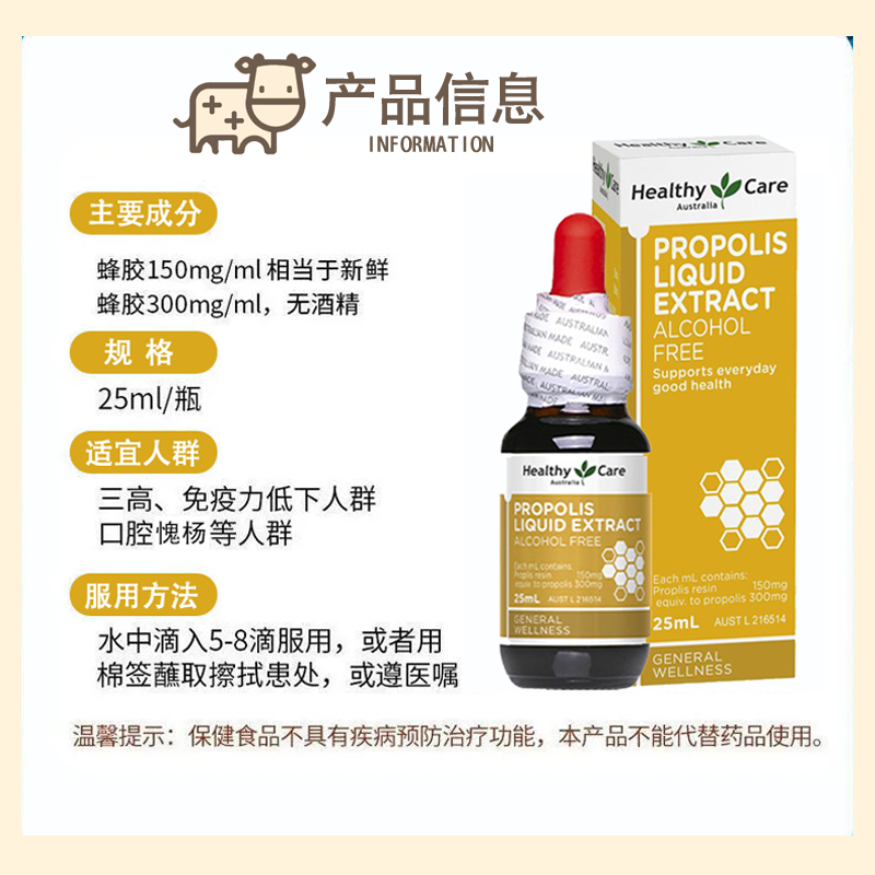 HealthyCare澳洲进口蜂胶滴剂滴液缓解口腔咽喉润喉护嗓免疫25ml