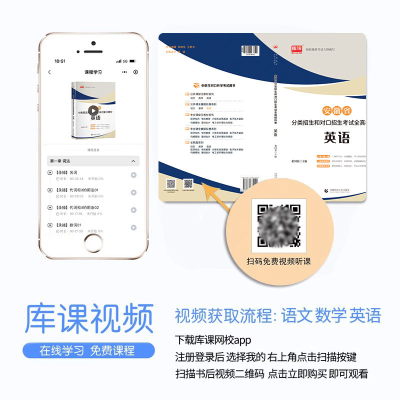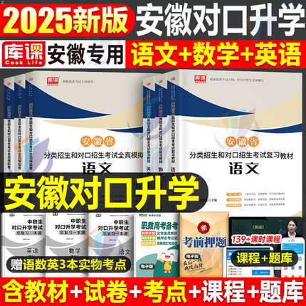 库课2025安徽中职生对口升学分类招生单招考试复习资料教材必刷题高职单招历年真题模拟试卷题库语文数学英语总复习面对面网课视频