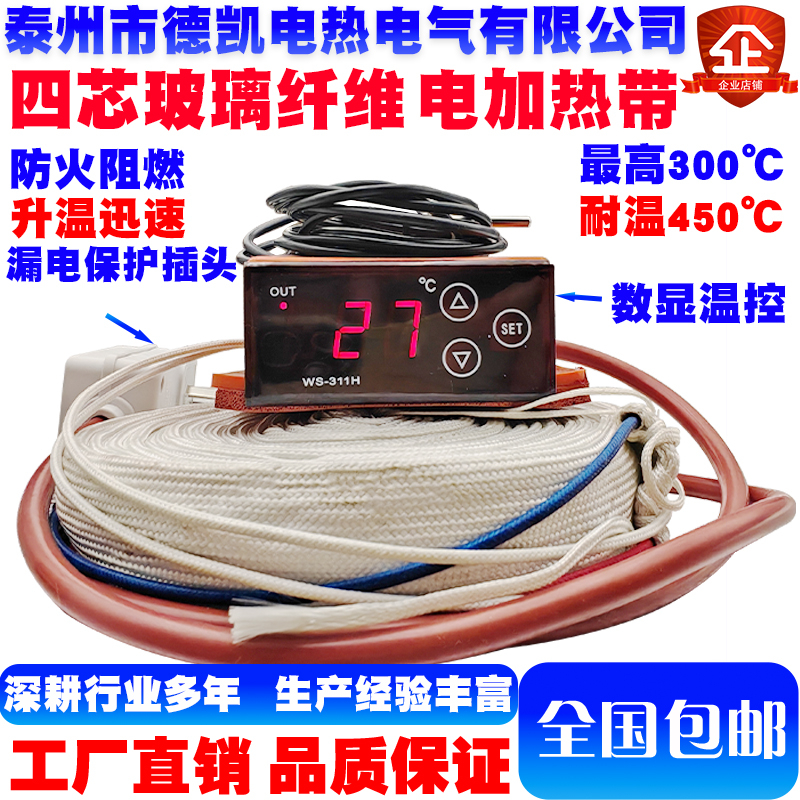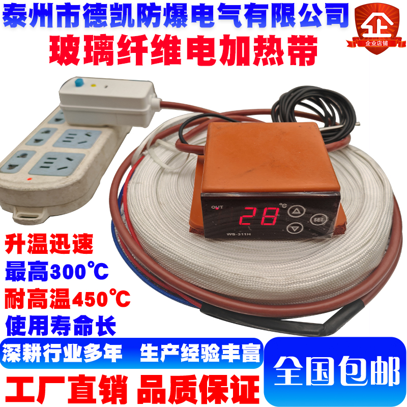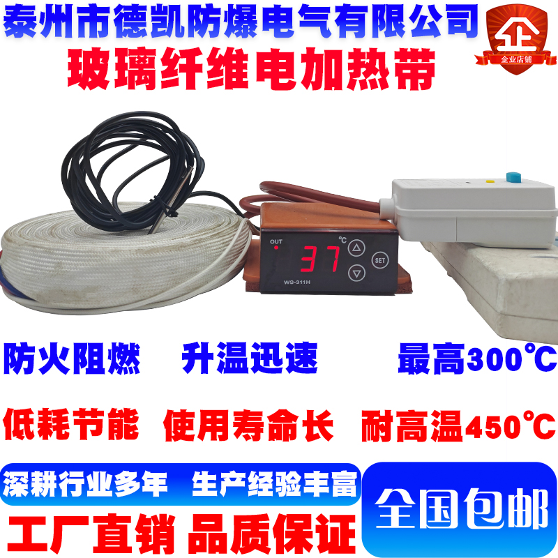 玻璃纤维电加热带接好温控器漏电保护插头极限温度300℃耐温400℃