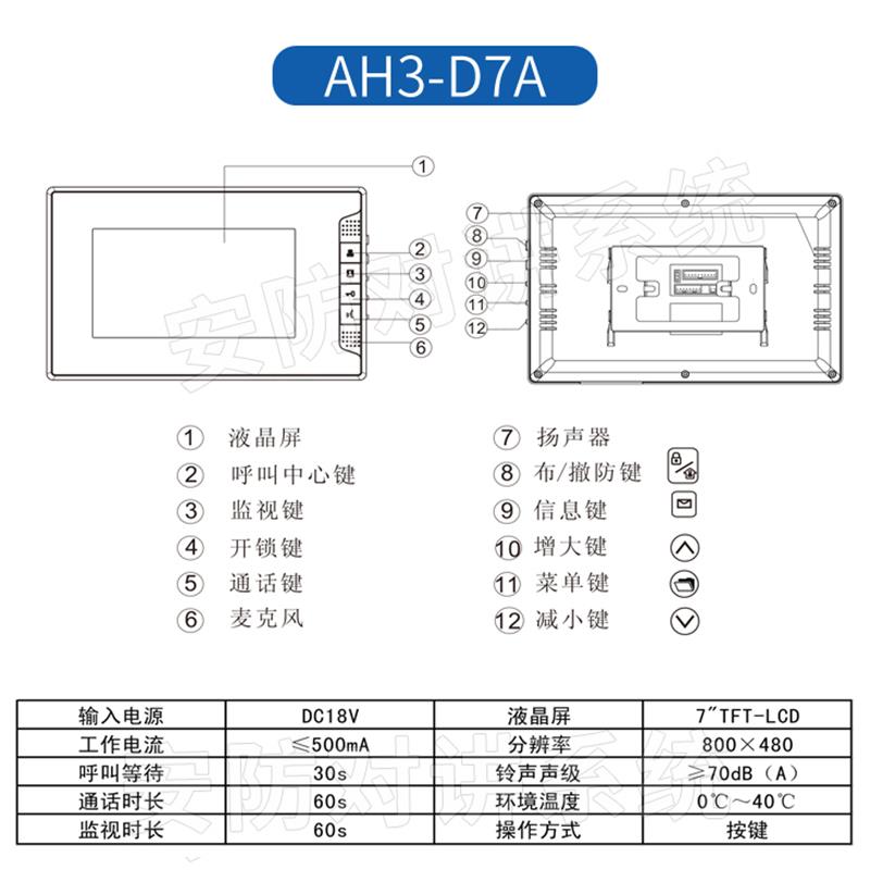 冠林楼宇对讲AH3-D7A可视对讲室内机AH1-F3VC可视门铃买 就送配件