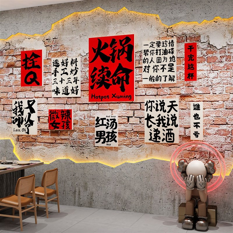 网红复古怀旧市井火锅店墙面装饰品餐饮饭工业风创意背景贴纸挂画