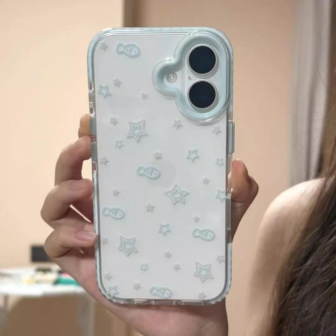 小清新星星小鱼适用于iPhone16pro手机壳苹果17Air/iphone15plus保护套14/13/12/11防摔白底简约6/7/8P女款XR