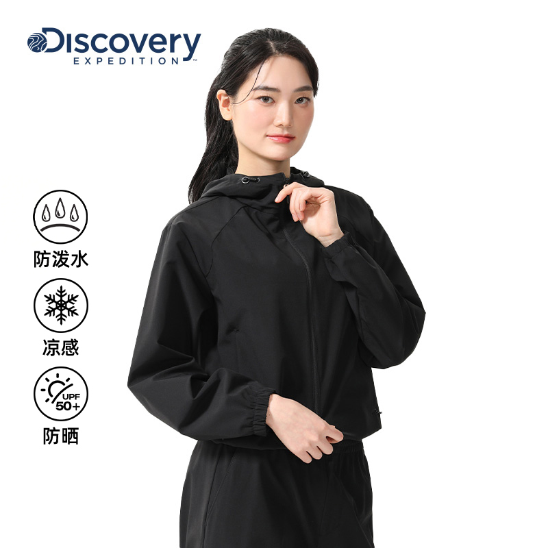 Discovery探索户外防泼水外套连帽防晒运动上衣凉感训练服女