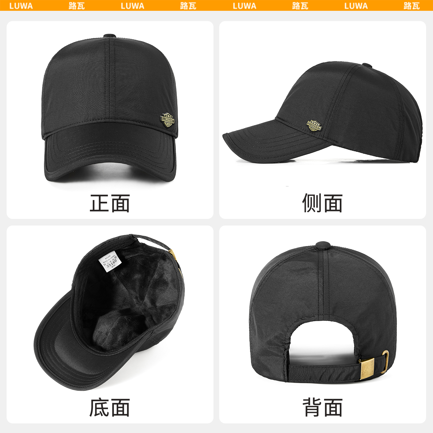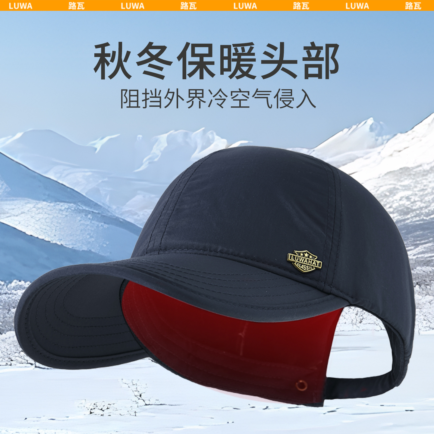 品牌新款冬天保暖加绒棒球帽男士户外骑行防风雪厚款中老年鸭舌帽