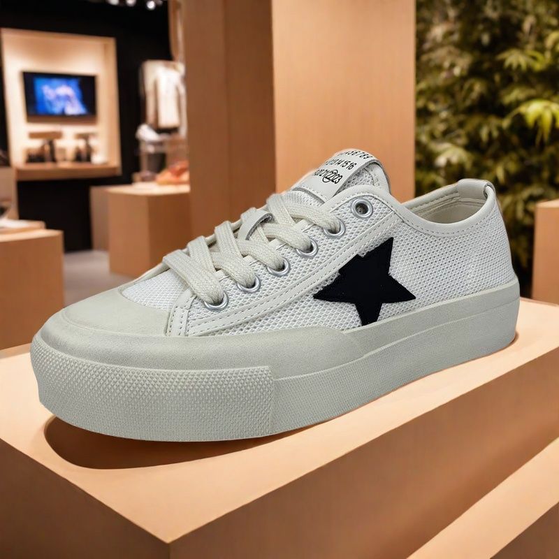 品牌撤柜星星鞋真皮小白鞋女2025新款百搭韩版系带休闲运动鞋板鞋