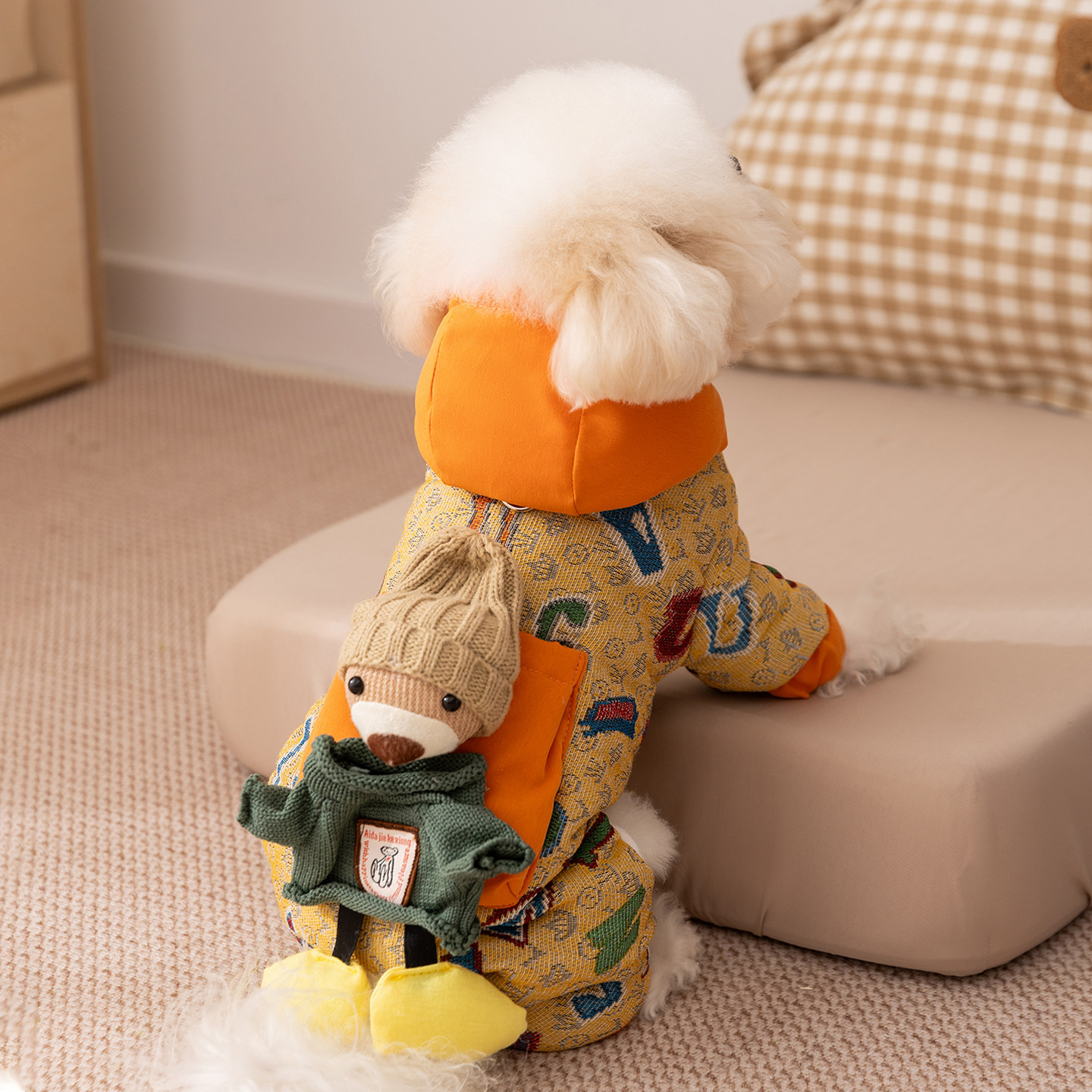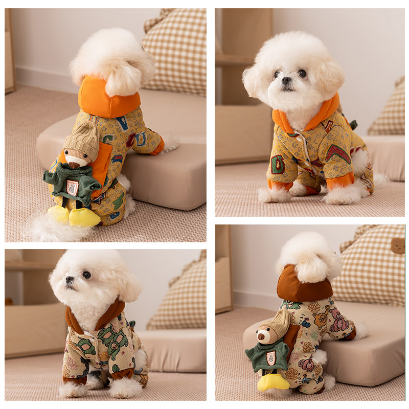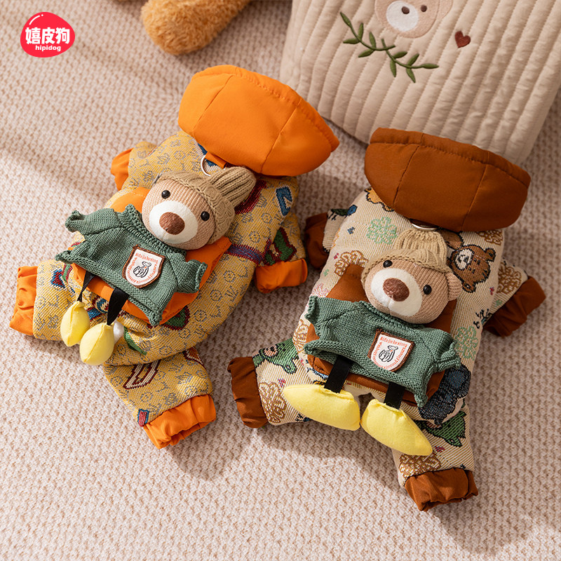 嬉皮狗涂鸦潮酷小熊连帽四脚棉衣