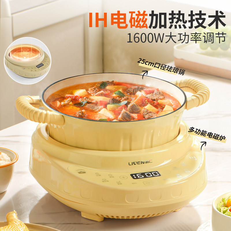 利仁电热火锅珐琅锅电磁锅煲汤家用焖炖锅多功能炒锅平底锅电磁炉