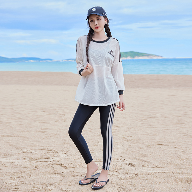 2024新款游泳衣女分体式三件套遮肚显瘦聚拢小胸韩国ins风泡温泉