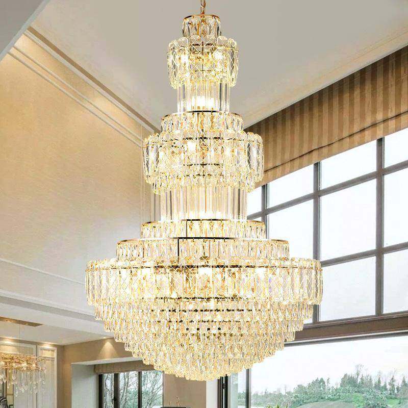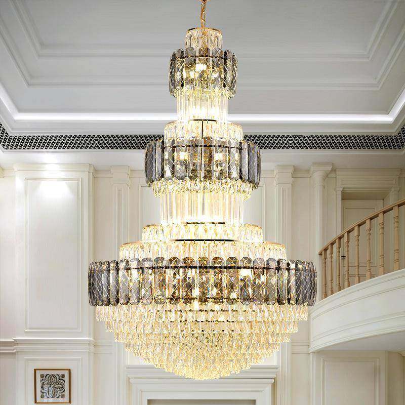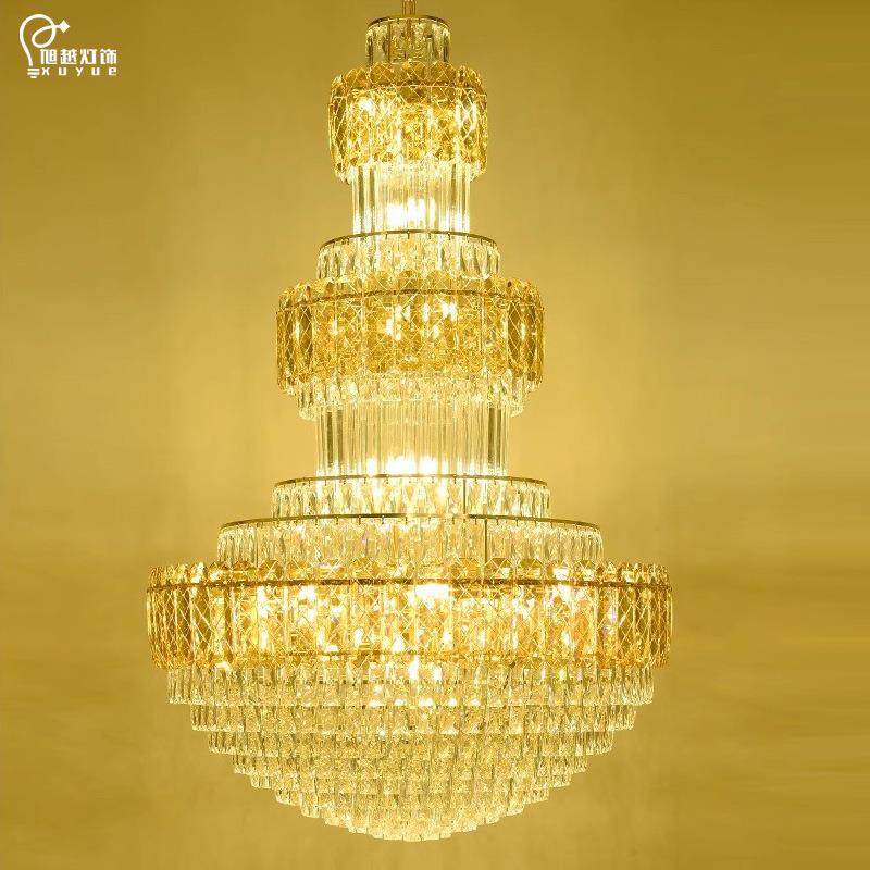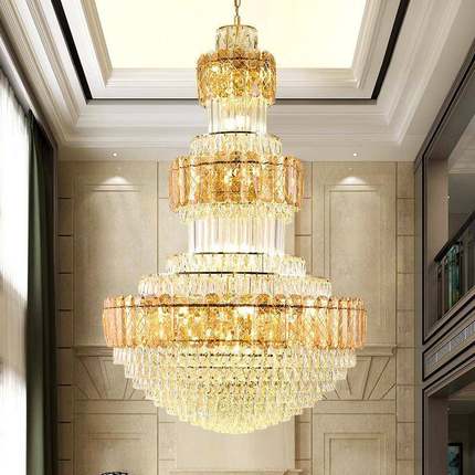 轻奢复式楼客厅大吊灯水晶家用圆形2023新款酒店大堂别墅中空灯具