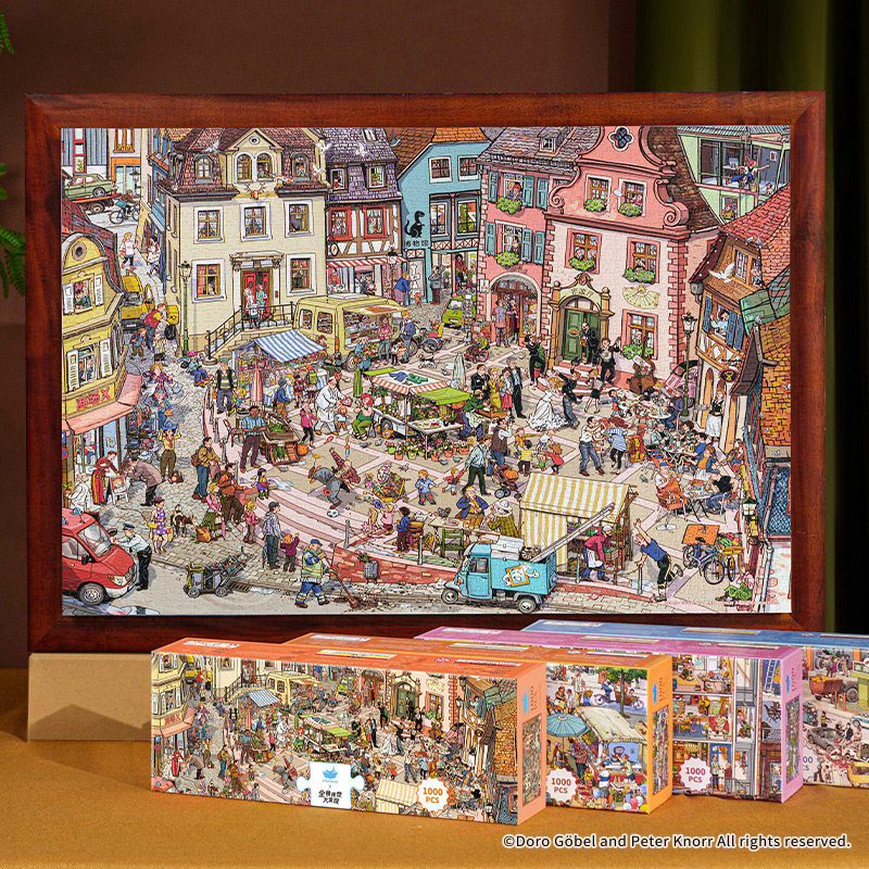 猫的天空之城拼图1000片高级感成人版小镇的集市全景视觉解压相框