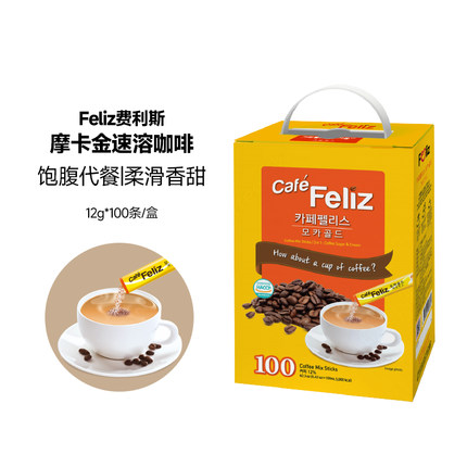韩国进口Feliz费利斯摩卡金速溶咖啡拿铁三合一速溶冲泡咖啡1200g