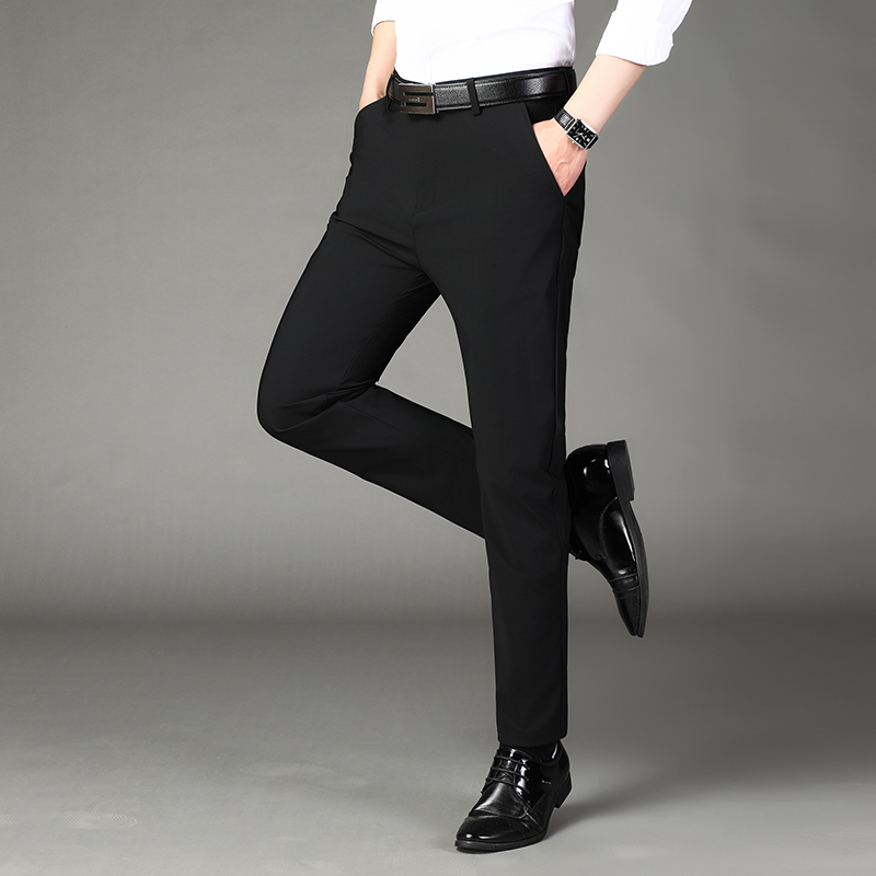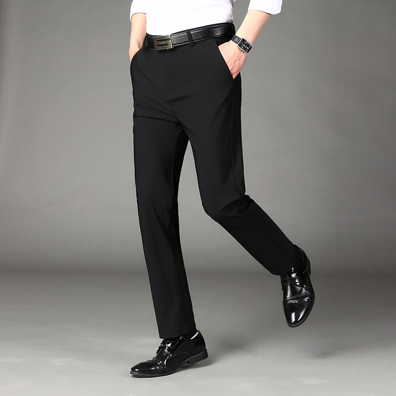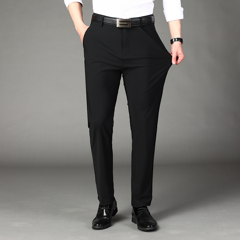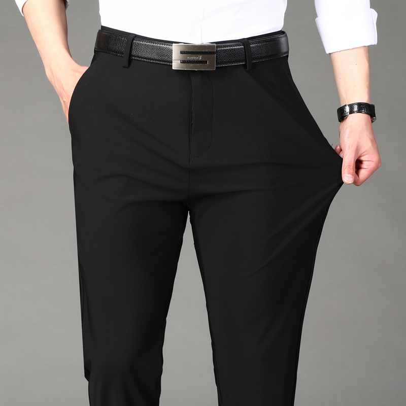 夏季冰丝薄款高弹力垂顺大码裤子男士商务休闲裤中年宽松直筒西裤