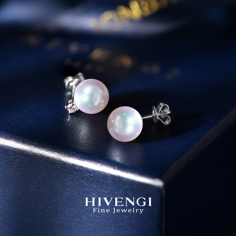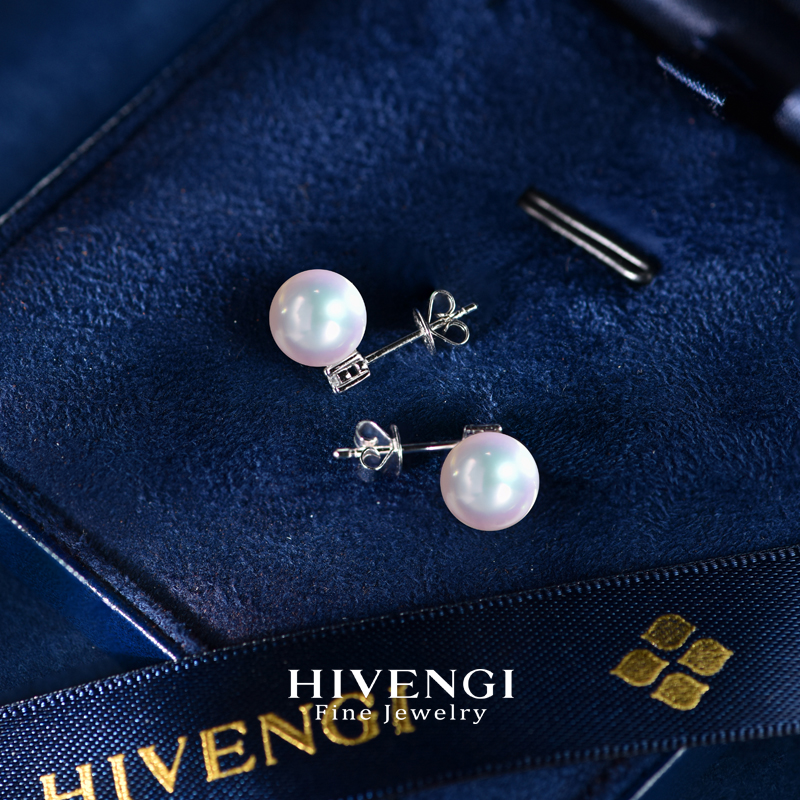 HIVENGI/海梵纪日本AKOYA天然海水珍珠耳钉 18K白金钻石耳饰耳环