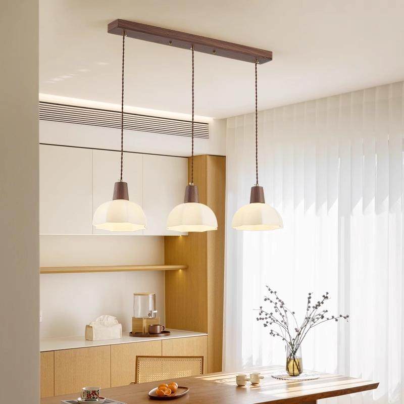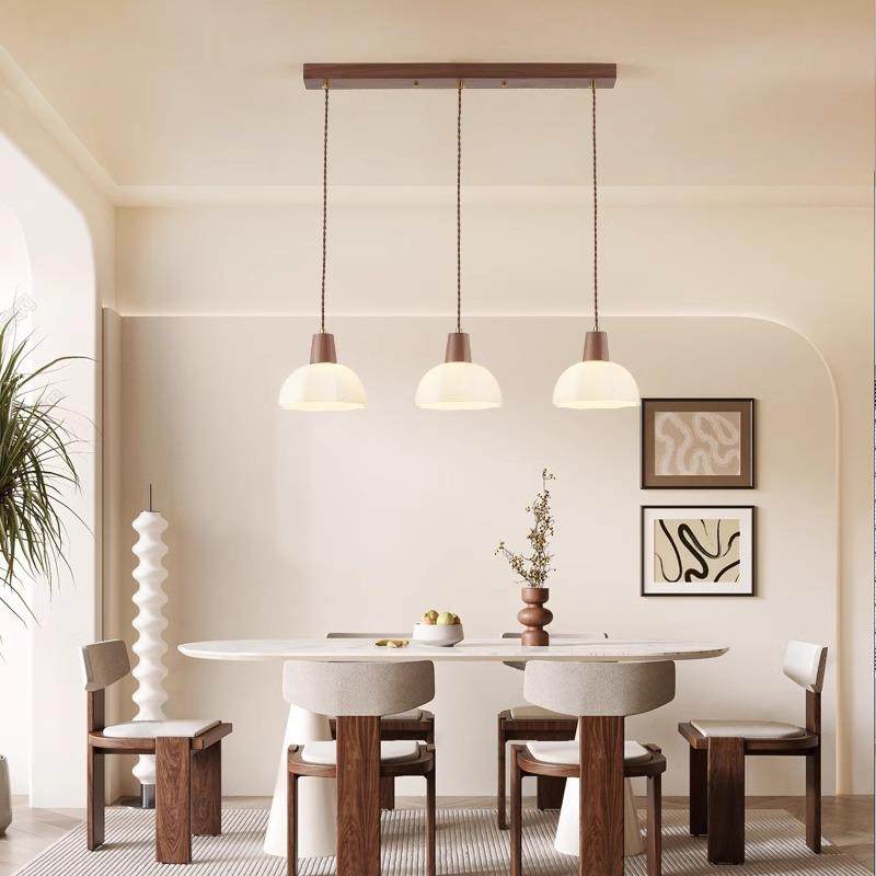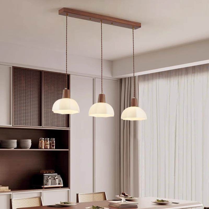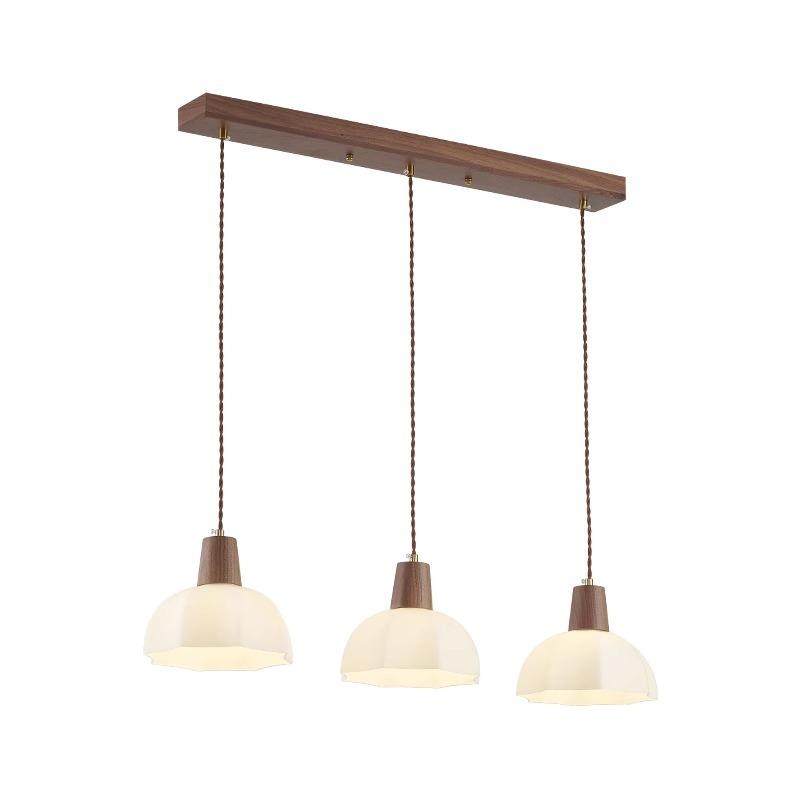 新中式餐厅三头吊灯日式创意网红吧台饭厅灯具胡桃木玻璃床头吊灯