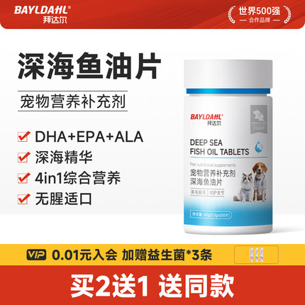 拜达尔鱼油猫咪专用狗狗宠物掉毛深海鱼油片猫用美毛犬用鱼肝油