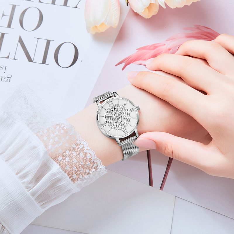 DOM腕表 新款时尚学生正品运动户外皮带玫金网带石英表女防水手表