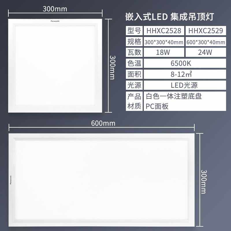 松下led平板灯集成吊顶300*300嵌入式面板灯厨房卫生间铝扣板灯