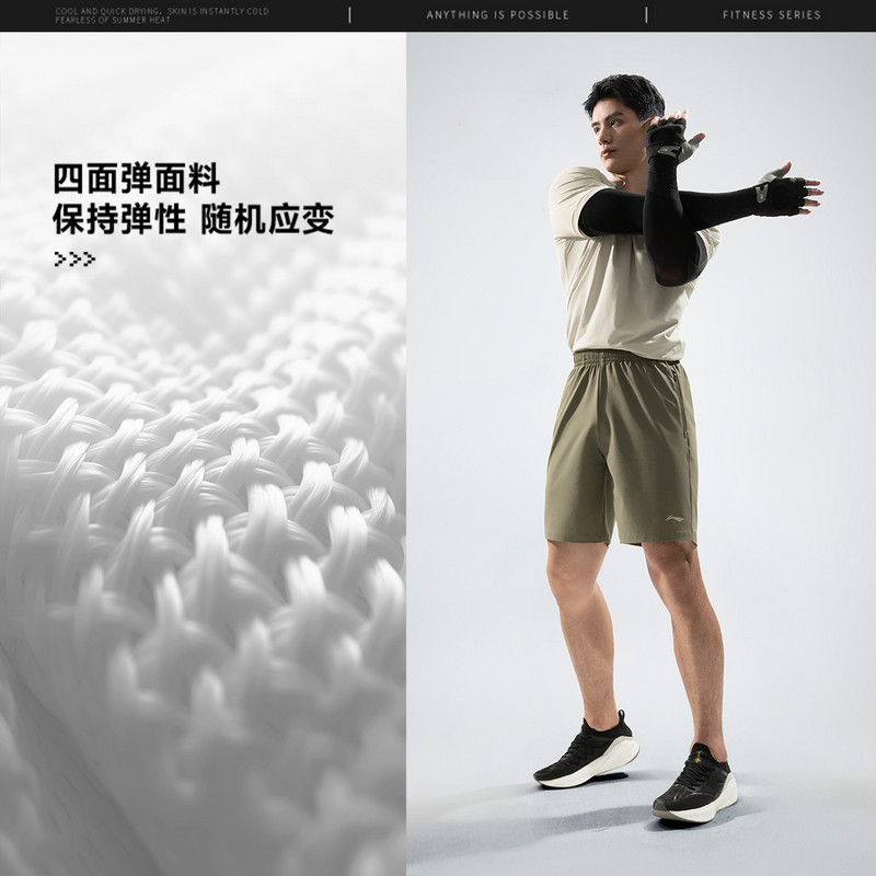 李宁男士24夏季五分裤健身跑步速干透气梭织运动短裤AKSU469-B品