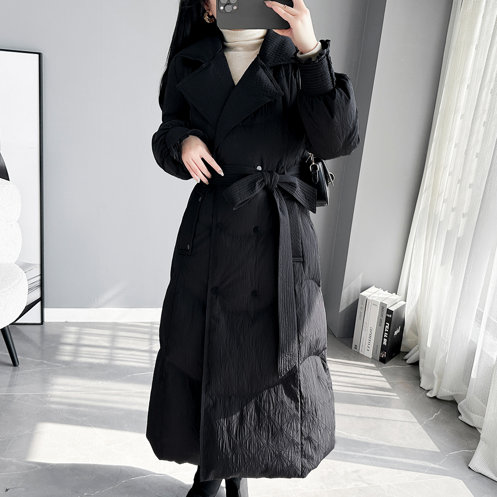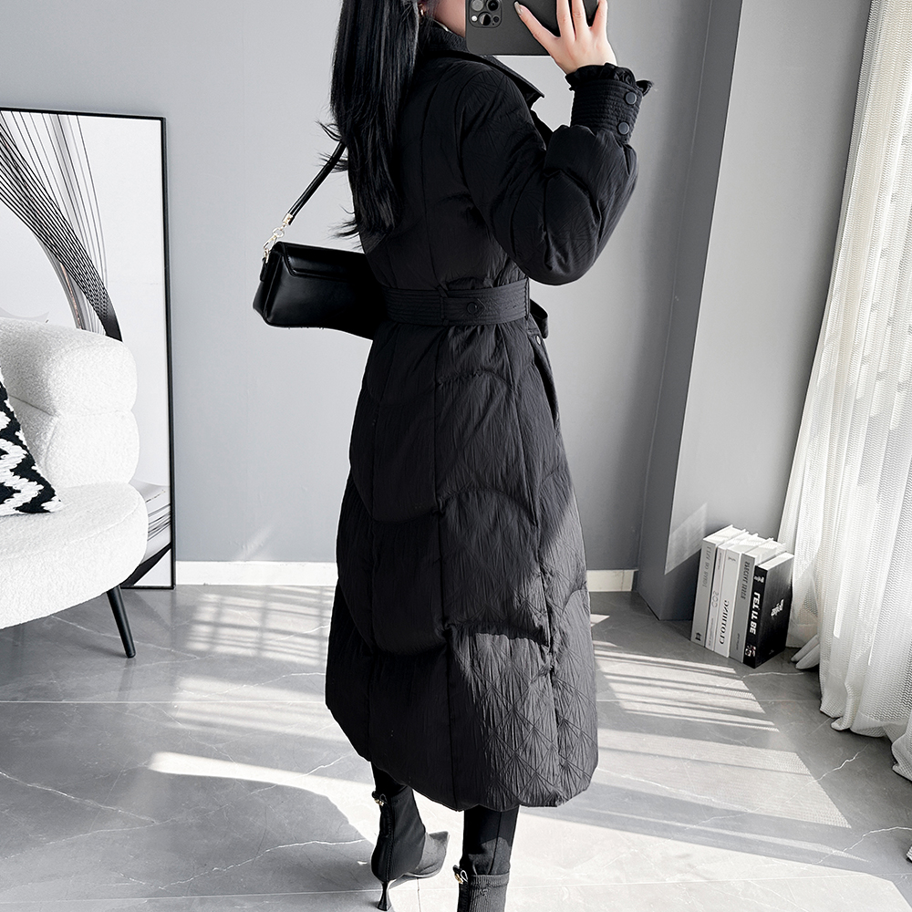 高级感中长款羽绒服女2025新款冬季韩版黑色显瘦白鸭绒大衣外套