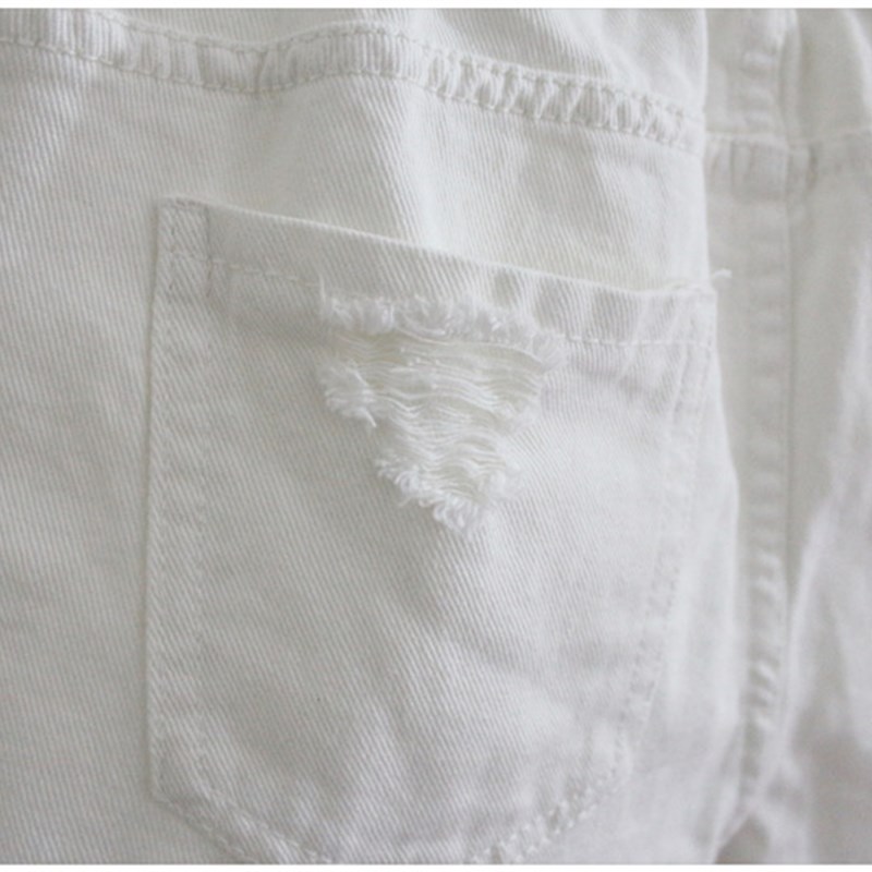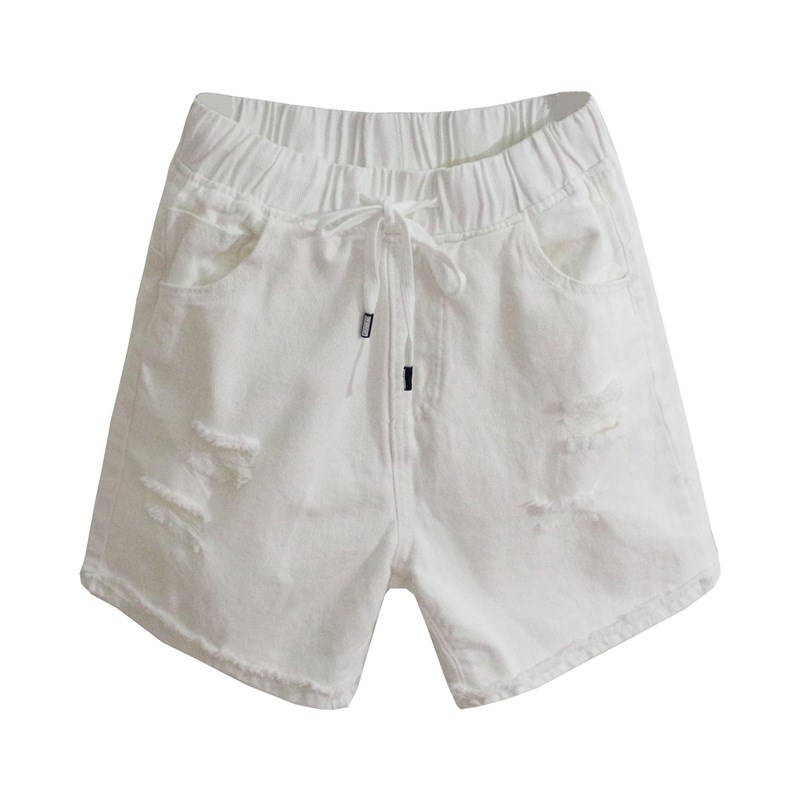 女白色牛仔短裤宽松哈伦裤破洞大码胖mm显瘦热裤松紧腰直筒阔腿薄