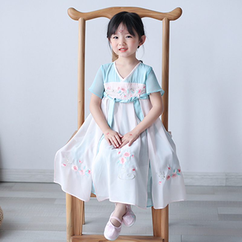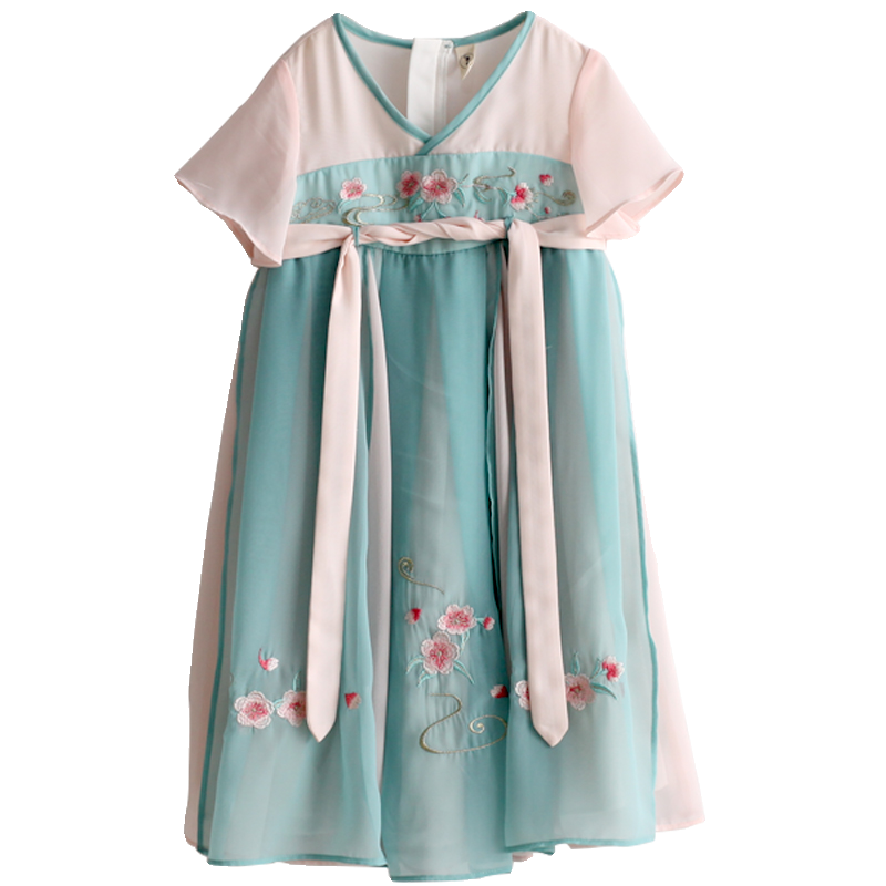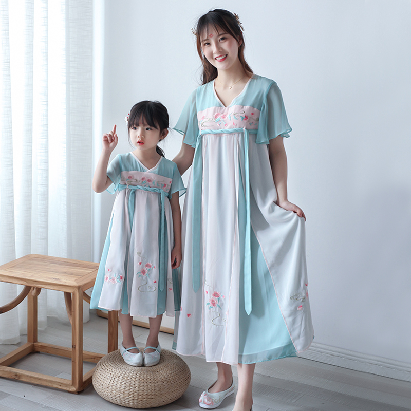 贝优可汉服女童超仙襦裙刺绣亲子母女装中国风连衣裙清仓