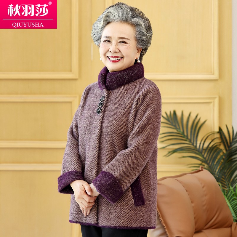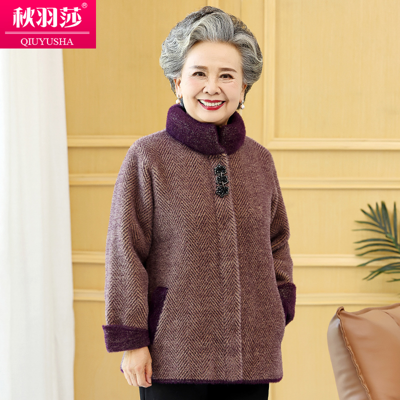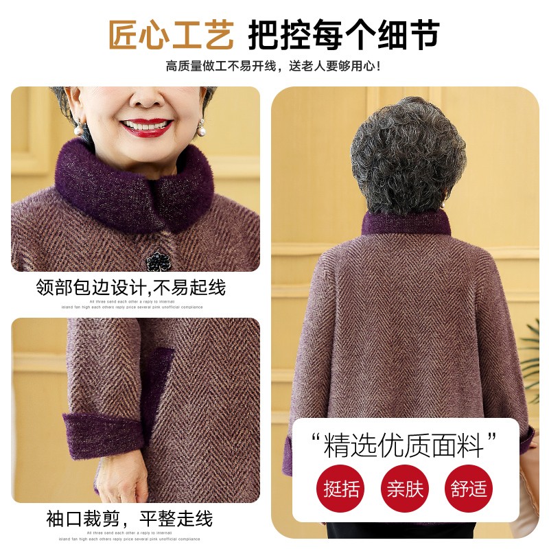 老年人冬装女妈妈加厚外套老太太保暖仿水貂洋气奶奶秋装老人衣服