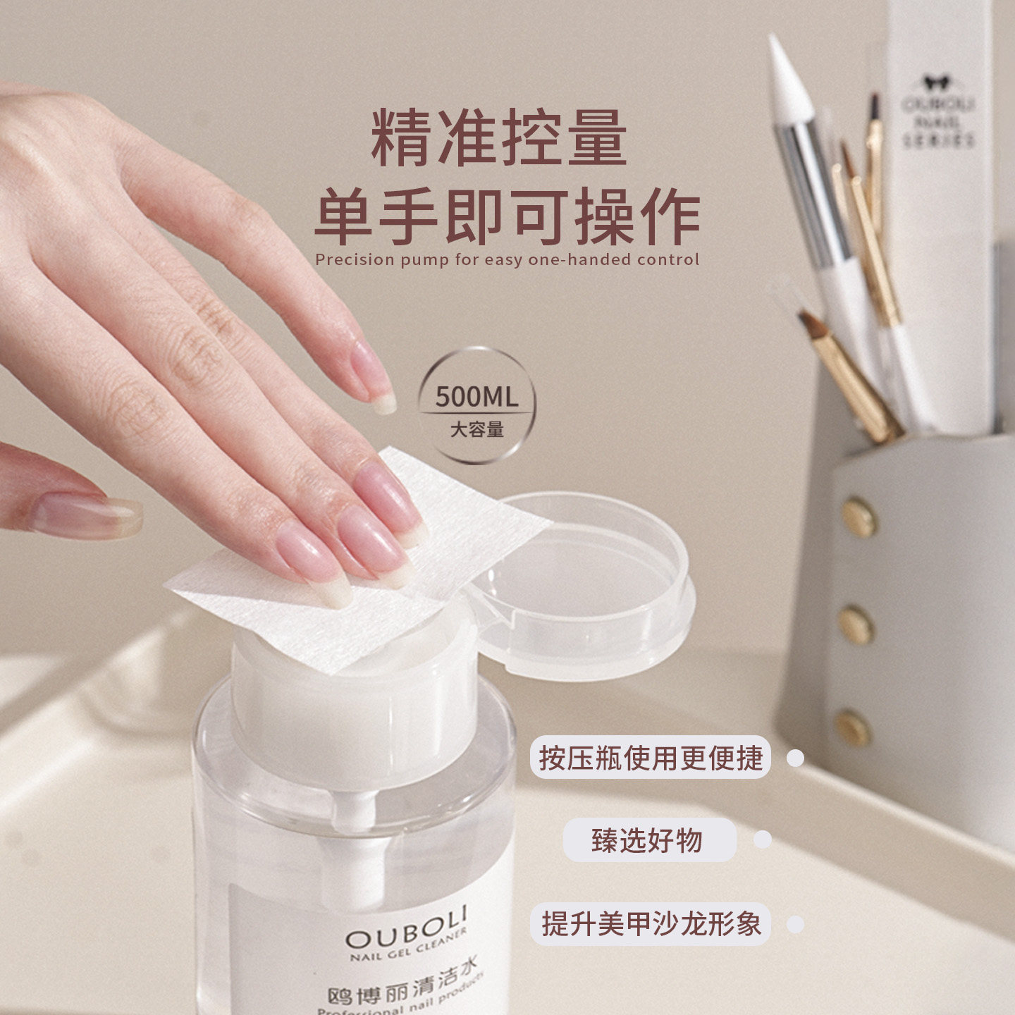 鸥博丽美甲清洁水按压瓶甲面清洁液大瓶速干甲油胶美甲工具
