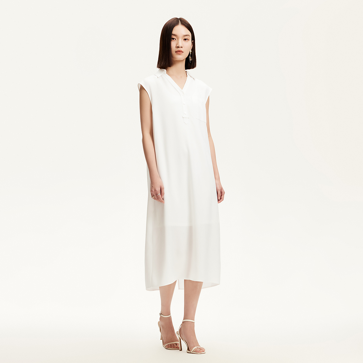 Vero Moda奥莱连衣裙2025夏季新款商场同款真两件无袖V领腰带高级