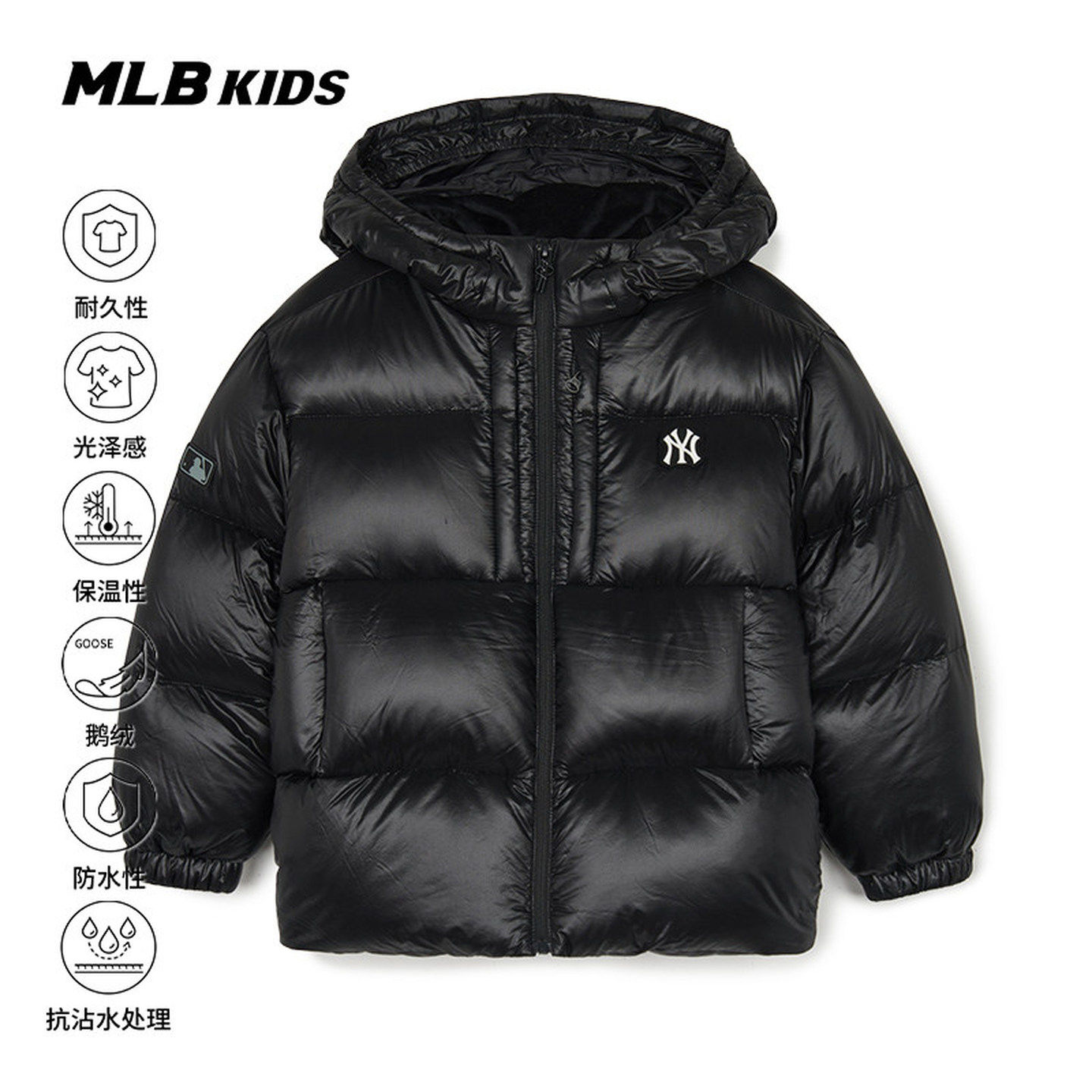 MLB童装NY小标24冬季新款男童女童防水连帽鹅绒羽绒服7ADJR0546