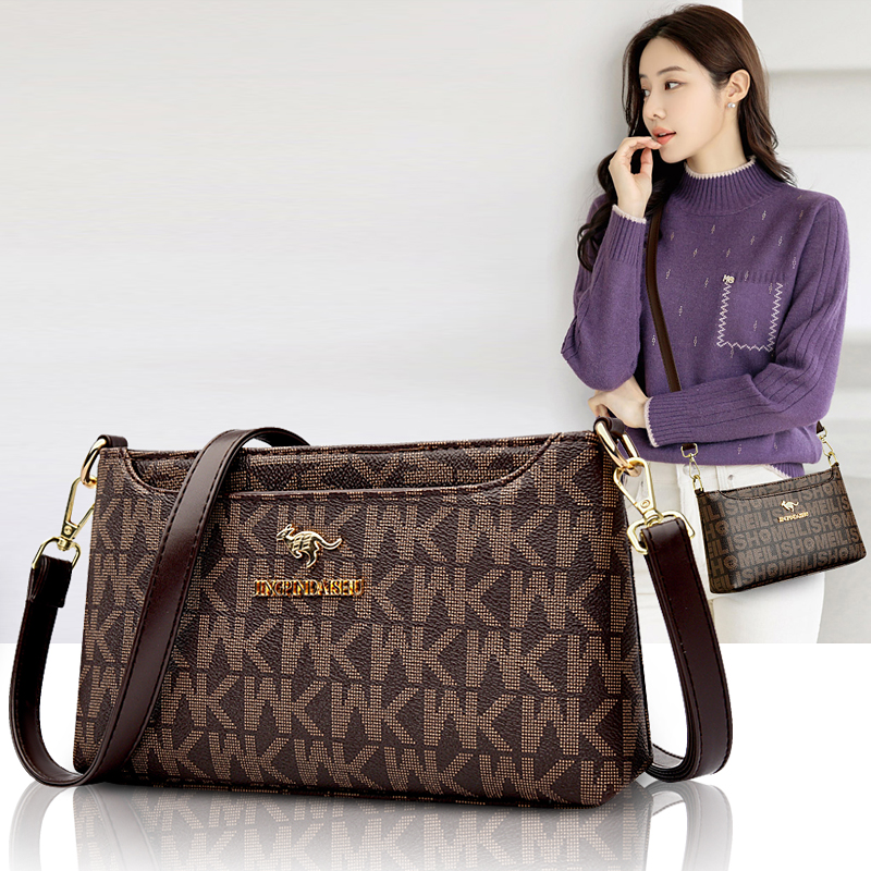 品牌真皮印花小方包女2024新款软皮手机零钱包百搭单肩斜挎妈妈包
