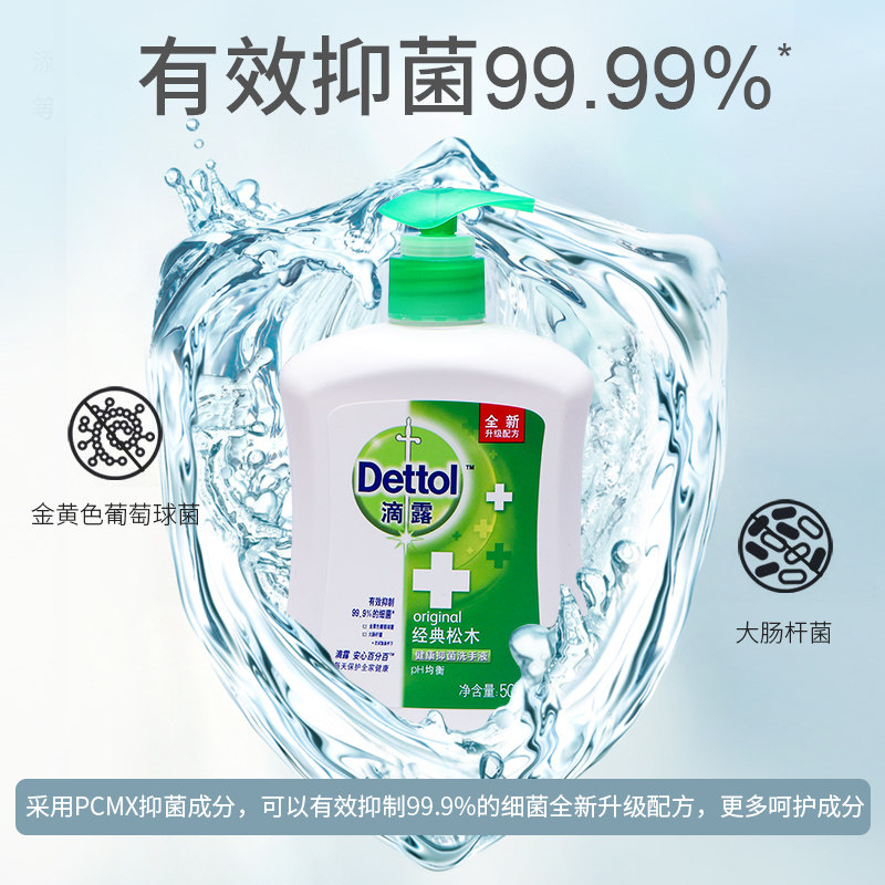 Dettol滴露松木洗手液杀菌家庭通用儿童清香型抑菌洗手液500ml装