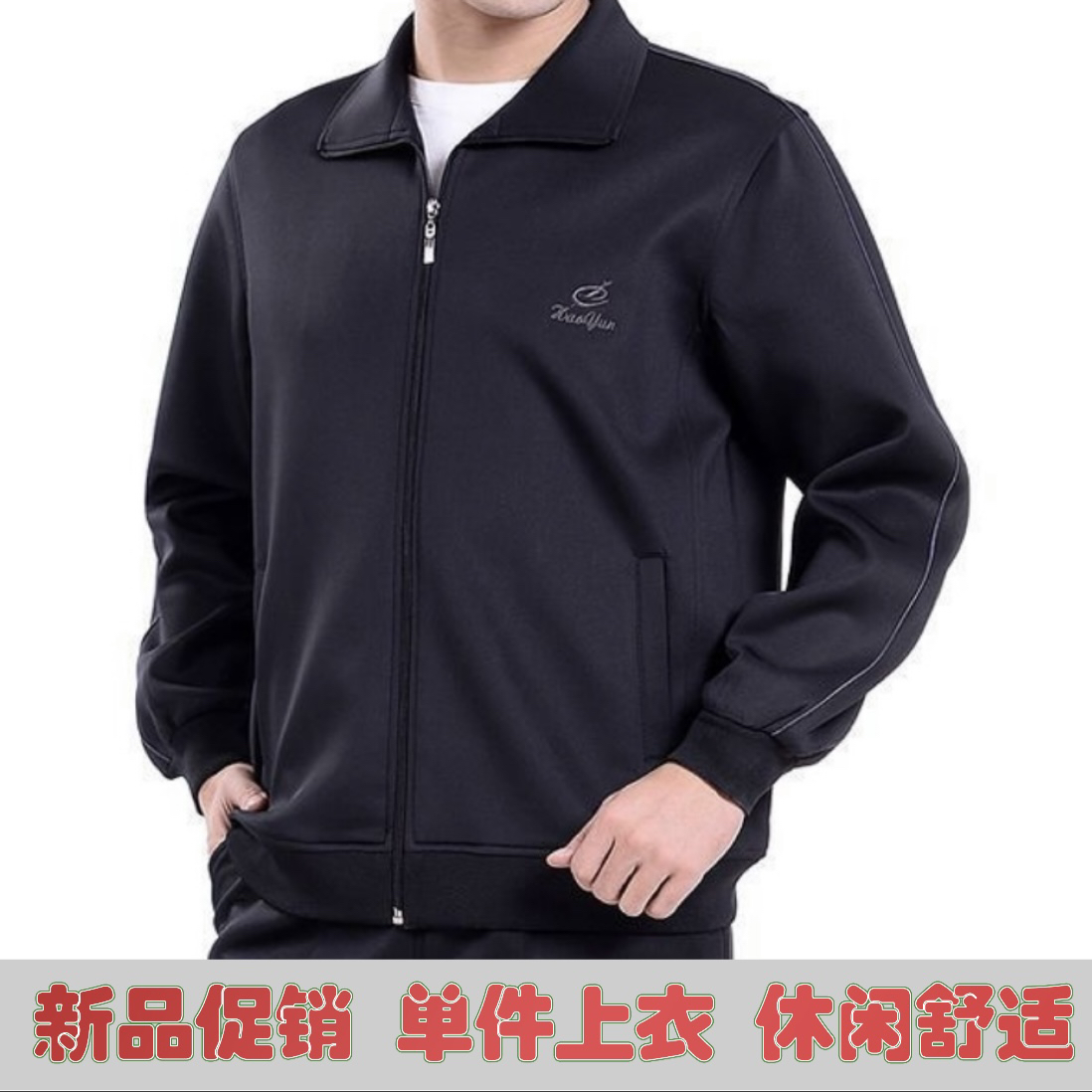 春秋款中老年运动服外套开衫上衣男加肥大码长袖夹克爸爸套装