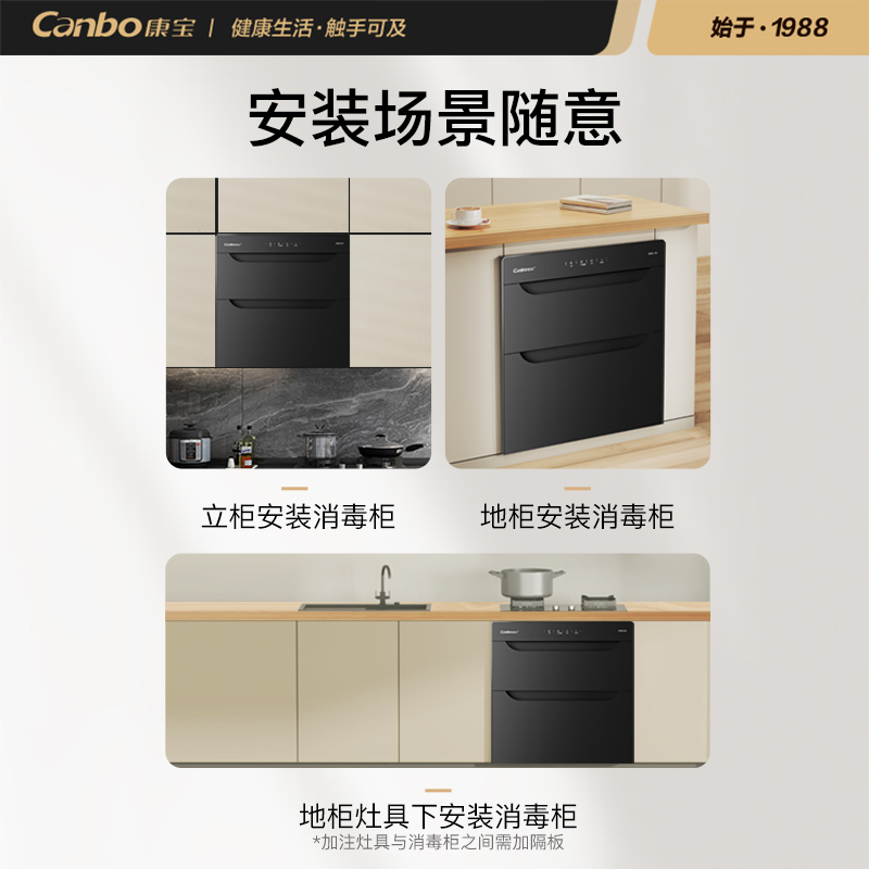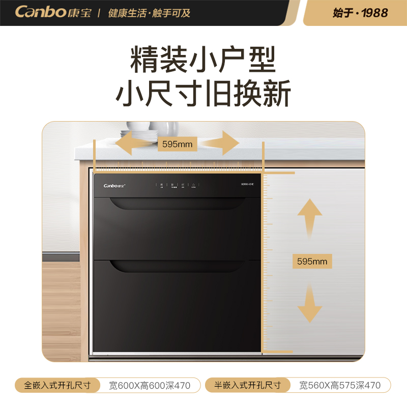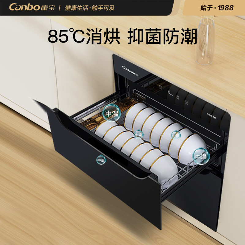 康宝E4E家用嵌入式小尺寸大容量高温二星级厨房碗筷刀具消毒柜