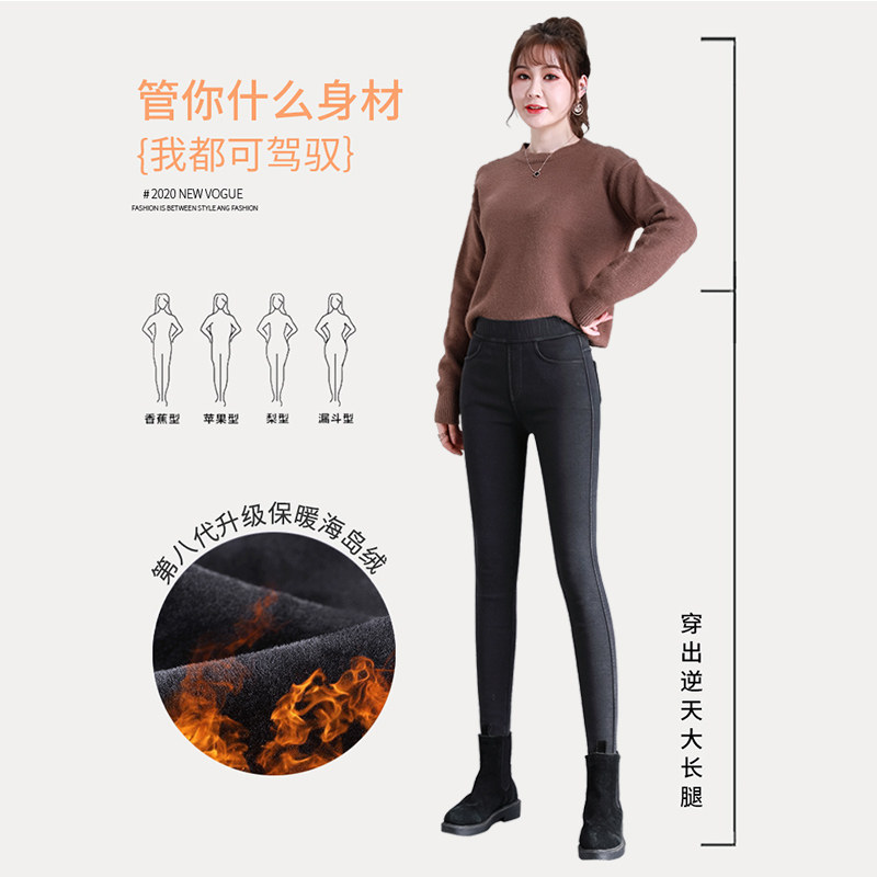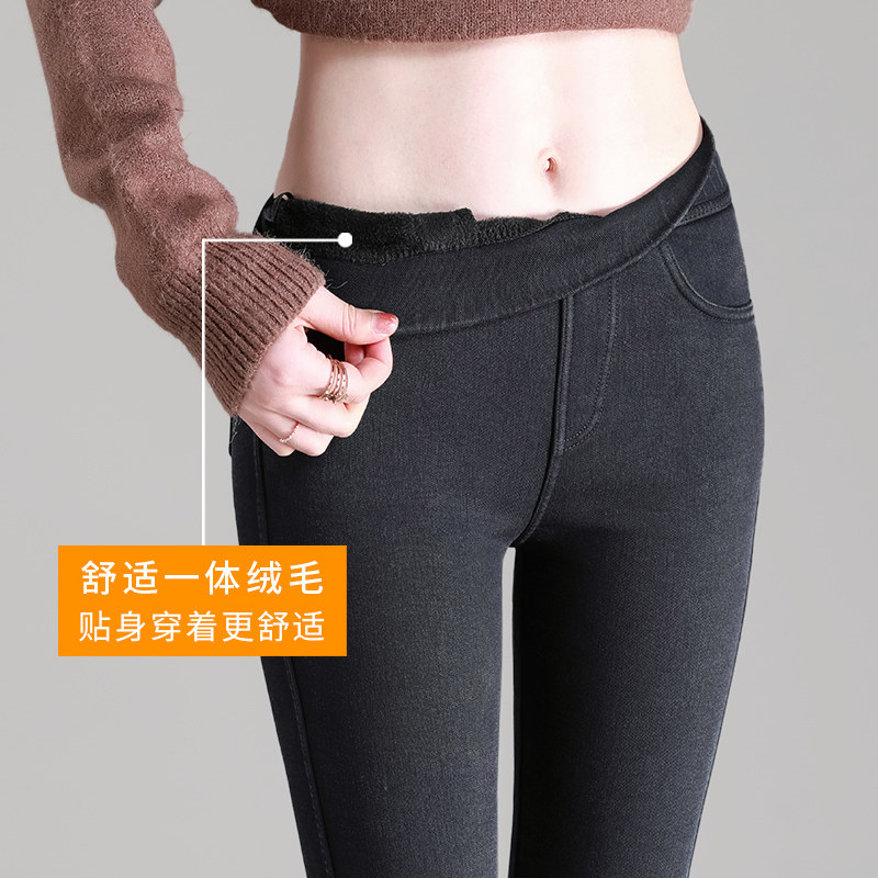 春秋烟灰色松紧腰牛仔显瘦打底裤