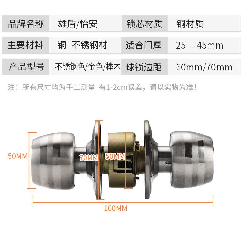 球形门锁室内房间门卧室球锁家用球型圆球锁木门锁不锈钢通用型