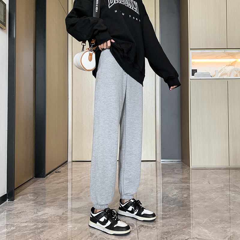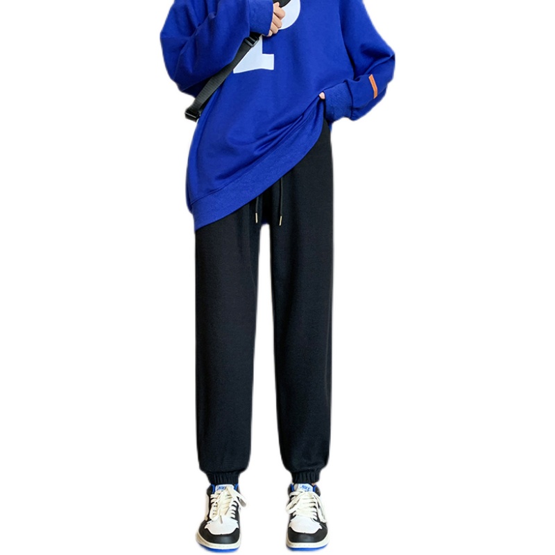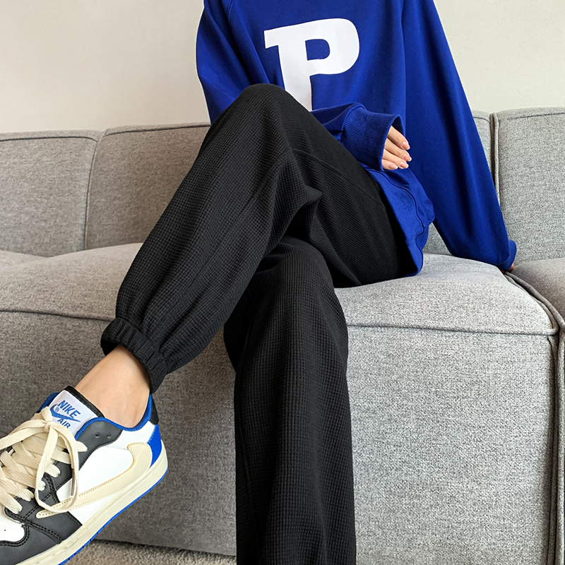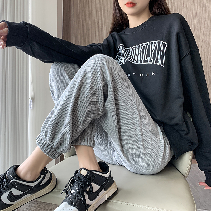 300斤特大码胖mm华夫格束脚运动裤女春秋薄款九分小个子休闲卫裤