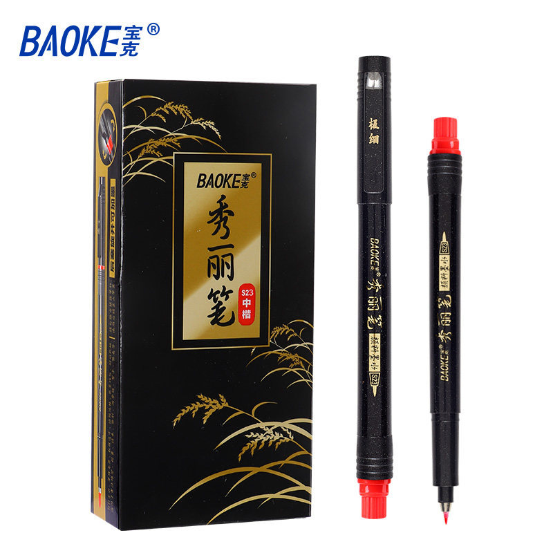 宝克红色秀丽笔可加墨水书法练字抄经勾线请帖红签名笔极细小中大楷字帖初学者专用硬笔手绘软毛笔S22旗舰店