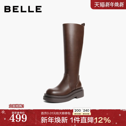 百丽厚底高长骑士弹力靴女2025冬季新款显瘦长筒靴子B2916DG5