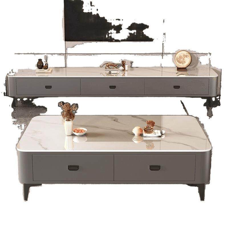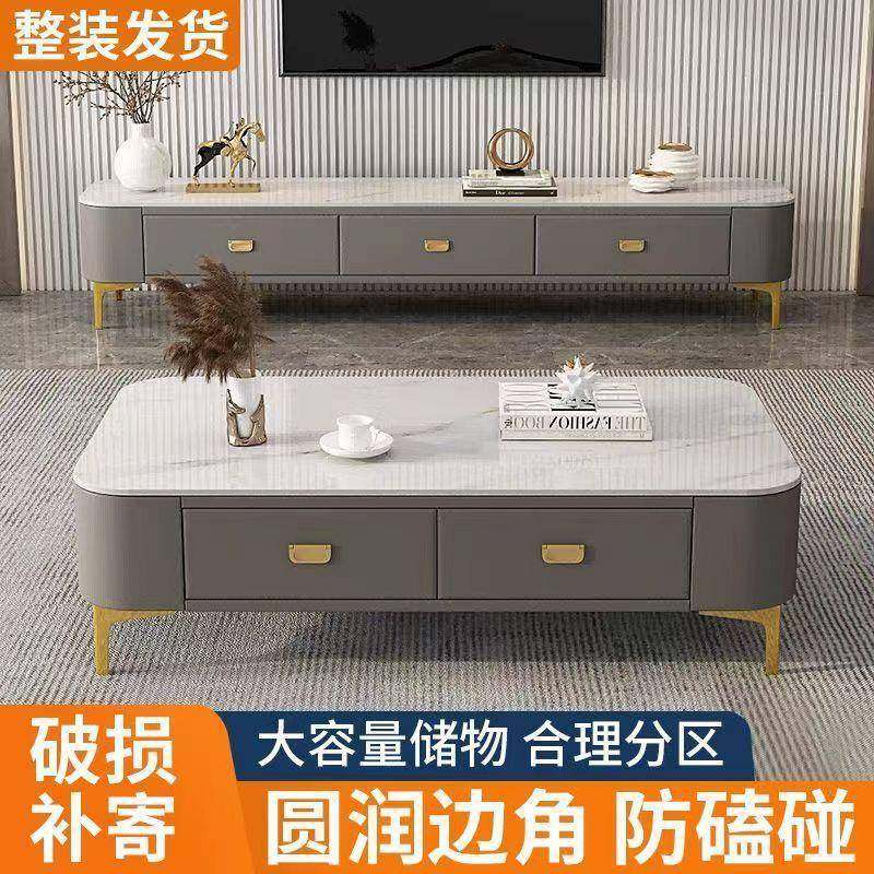 茶几电视柜组合家用客厅整装软包带抽屉小户型玻璃岩板面成套家具