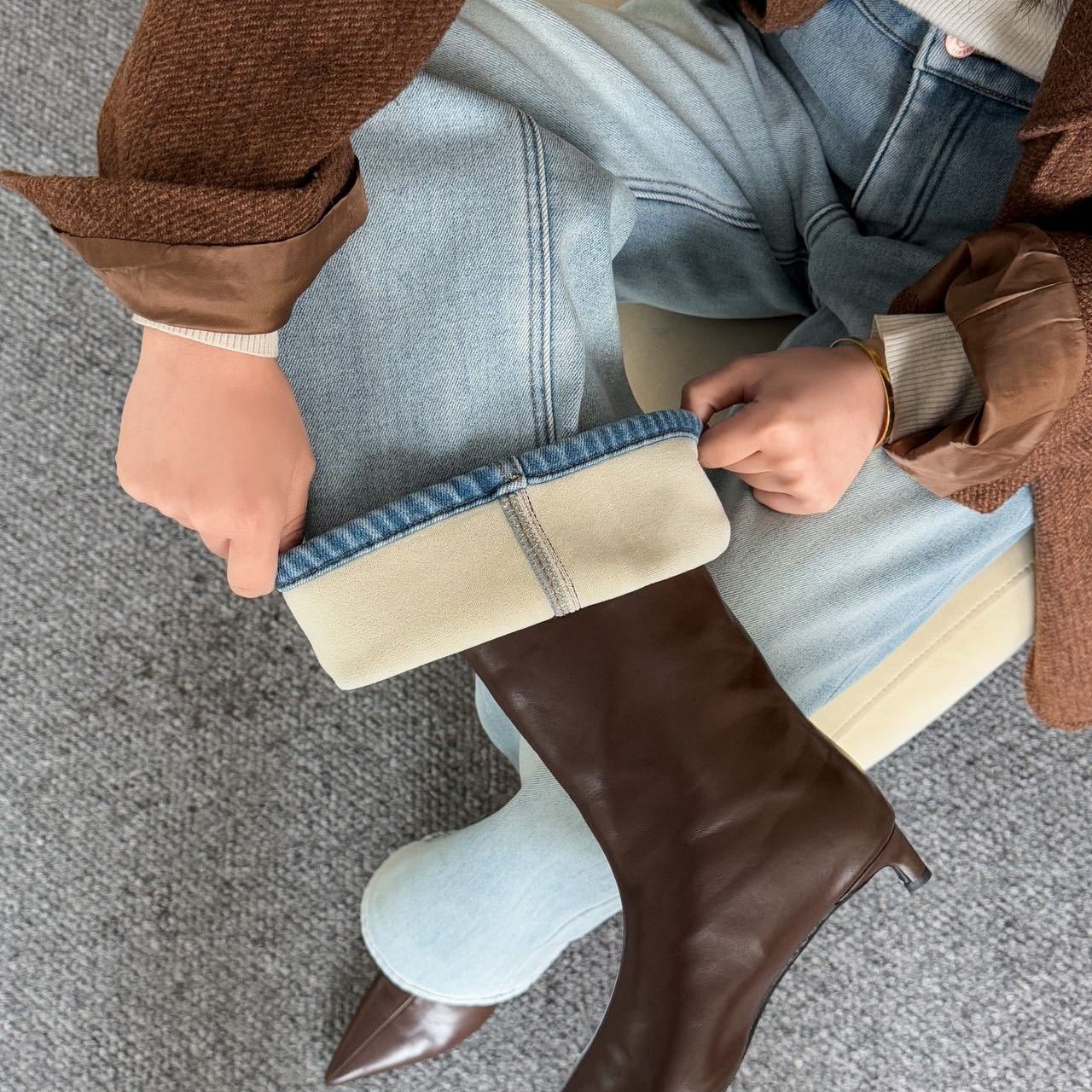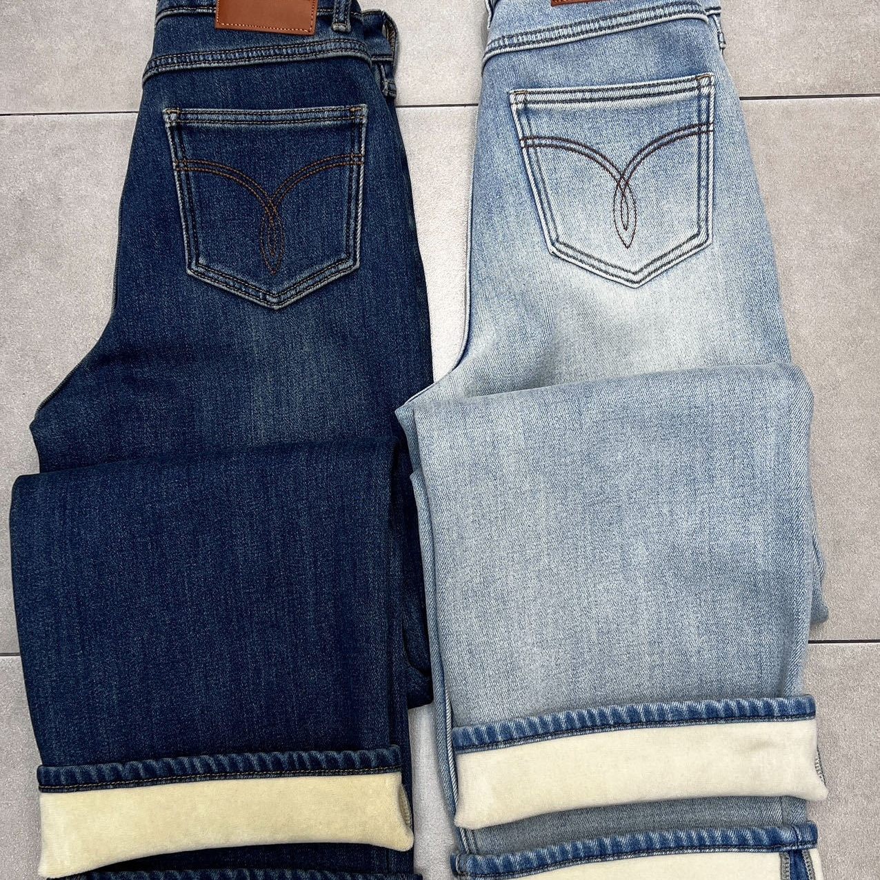 时髦特调牛仔加绒直筒牛仔裤女