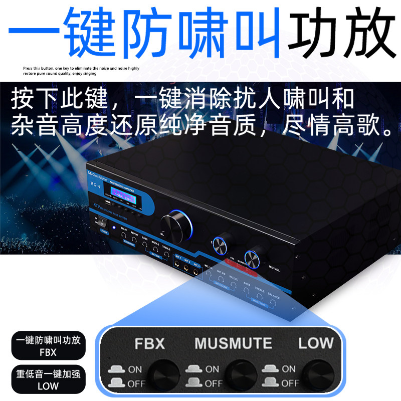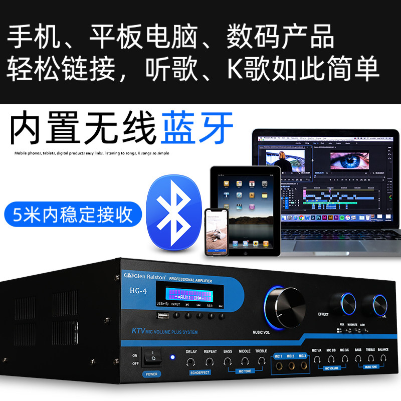 Glen ralston/格伦士顿业家庭ktv卡包功放机大功率防啸叫蓝牙USB播放家用功放