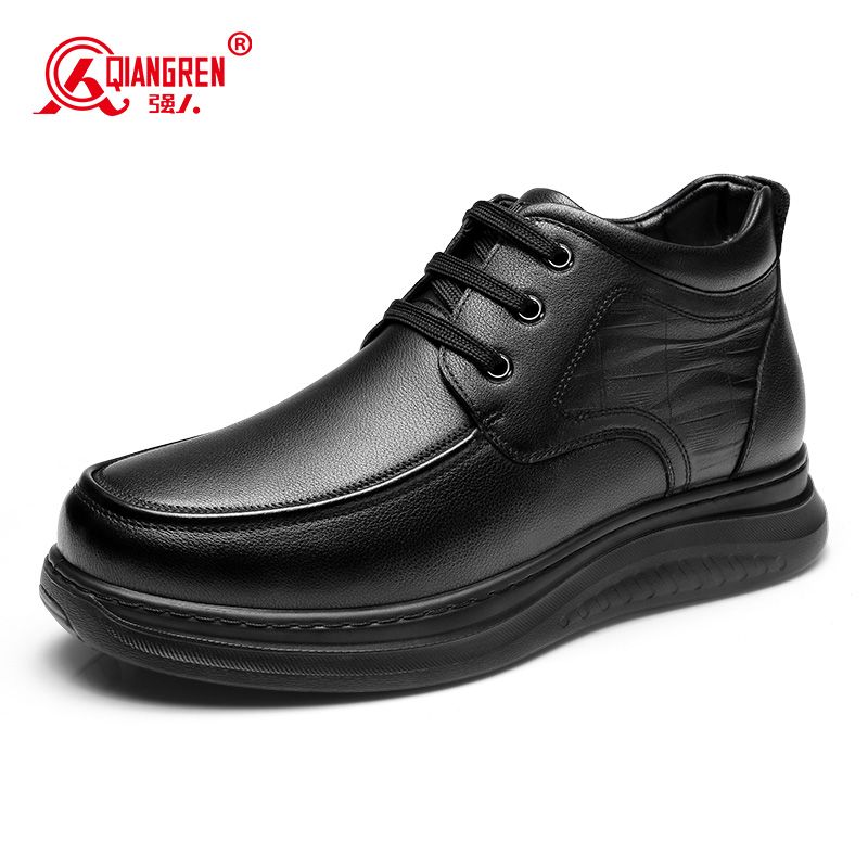 强人3515男羊毛皮鞋冬季新款保暖棉皮鞋商务休闲鞋系带软底爸爸鞋