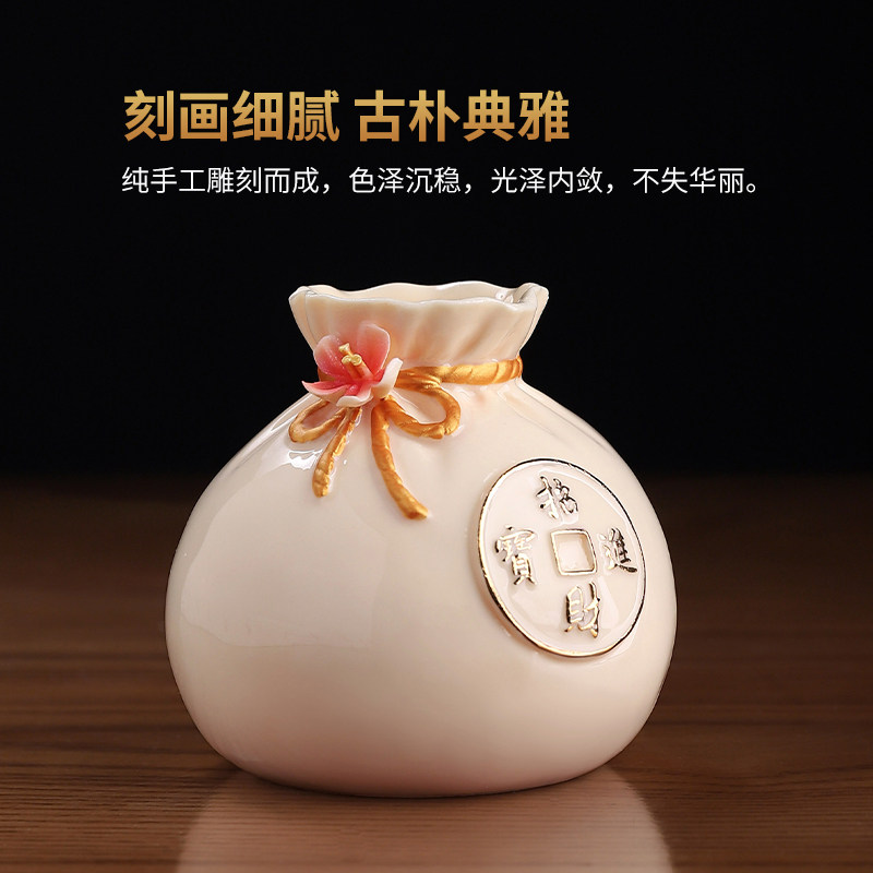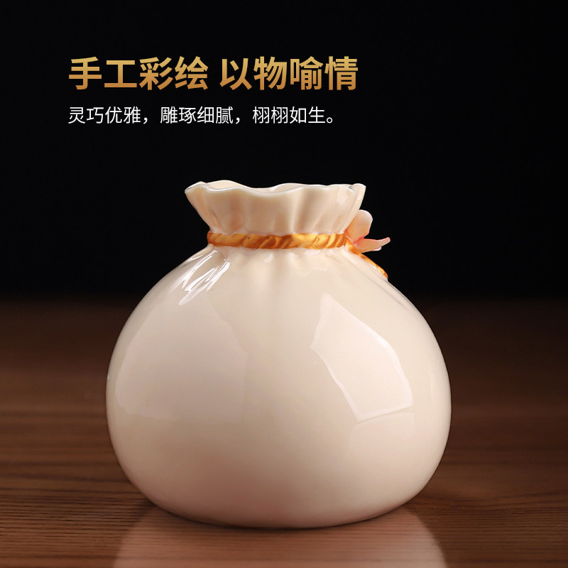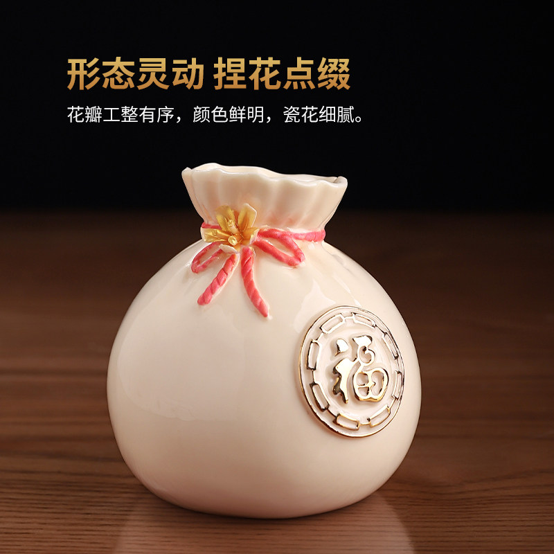 东方泥土福袋陶瓷小花器花插摆件新中式客厅办公室花瓶瓷瓶装饰品