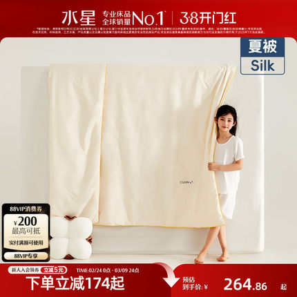 水星家纺全棉抗菌低敏蚕丝夏被婴幼儿A类可水洗儿童蚕丝被子青桑